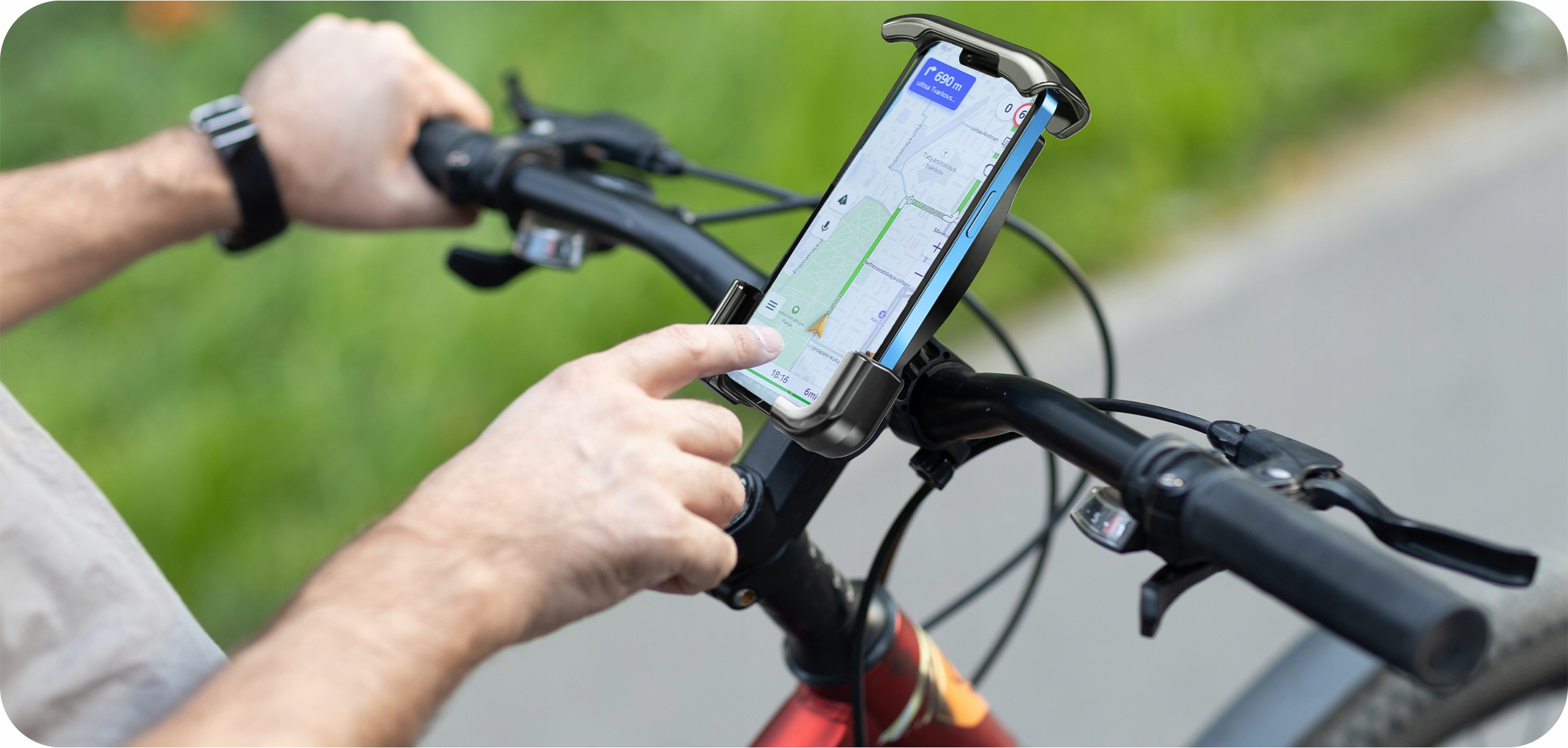 Убедитесь, что во время езды у вас есть удобный и безопасный доступ к смартфону! Этот компактный держатель для велосипедов - идеальное решение для каждого велосипедиста - как в городе, так и на бездорожье.