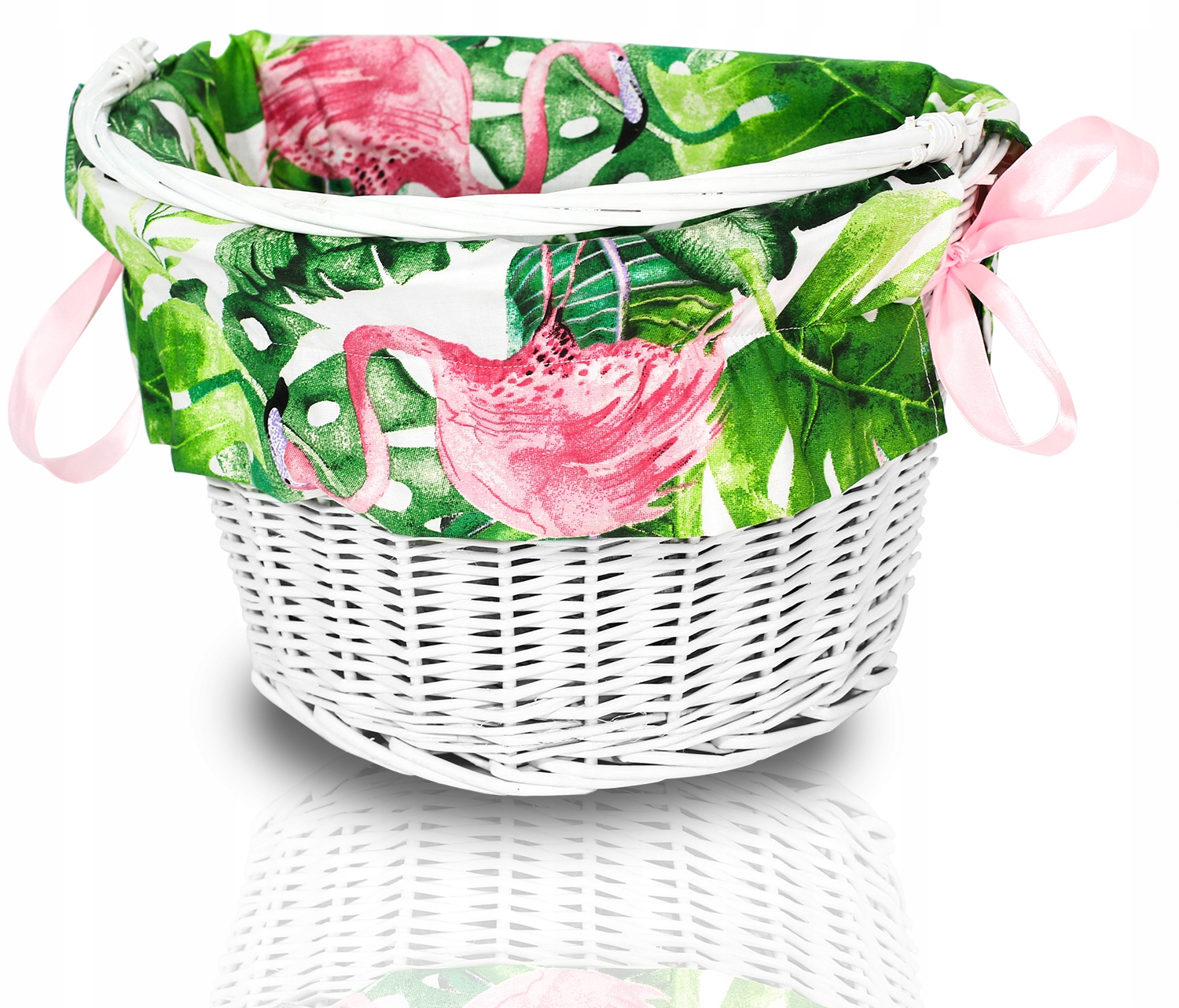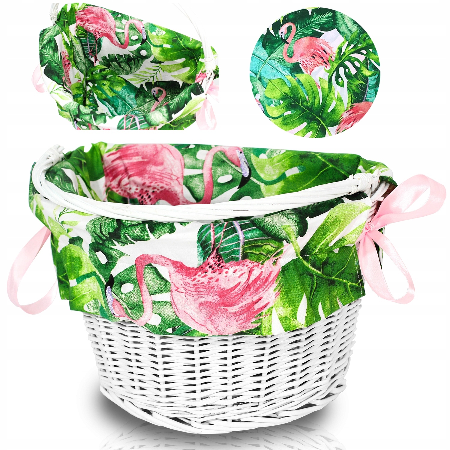 В верхней части вшита резина, благодаря которой она адаптируется к корзине, а атласные ленты придают шарм и устойчивость.