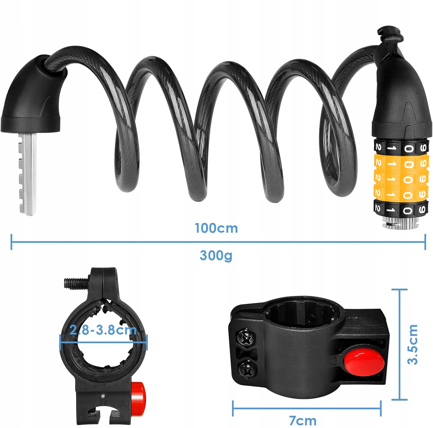 ВЕЛОСИПЕДНЫЙ ЗАМОК, ТРОС, КОДОВОЙ ЗАМОК, КОД, НАДЕЖНАЯ ЗАЩИТА ДЛЯ СИДЕНЬЯ ПОДСЕДЕЛЬНЫЙ ШТЫРЬ