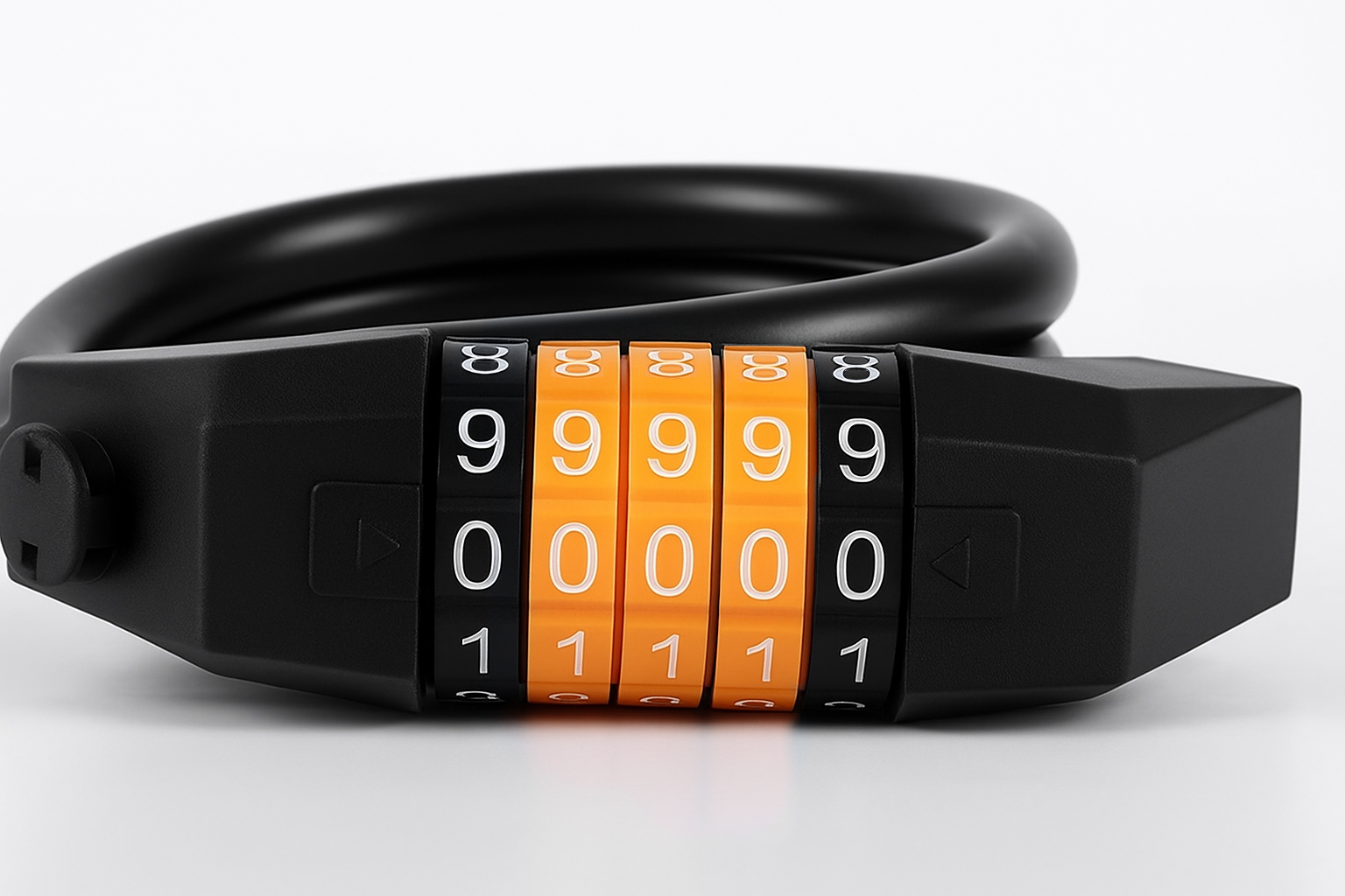 Замок легкий, гибкий и простой в использовании, а до 100 000 возможных комбинаций паролей позволяют идеально настроить код в соответствии с вашими потребностями. Кабель длиной 100 см позволяет удобно прикрепить велосипед к перилам, стойке или опоре, без необходимости носить с собой ключи.