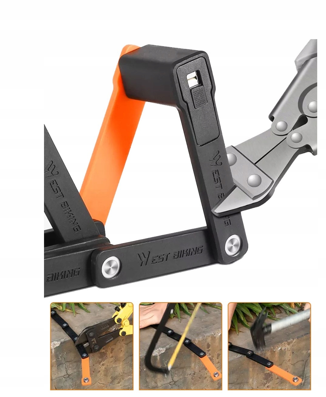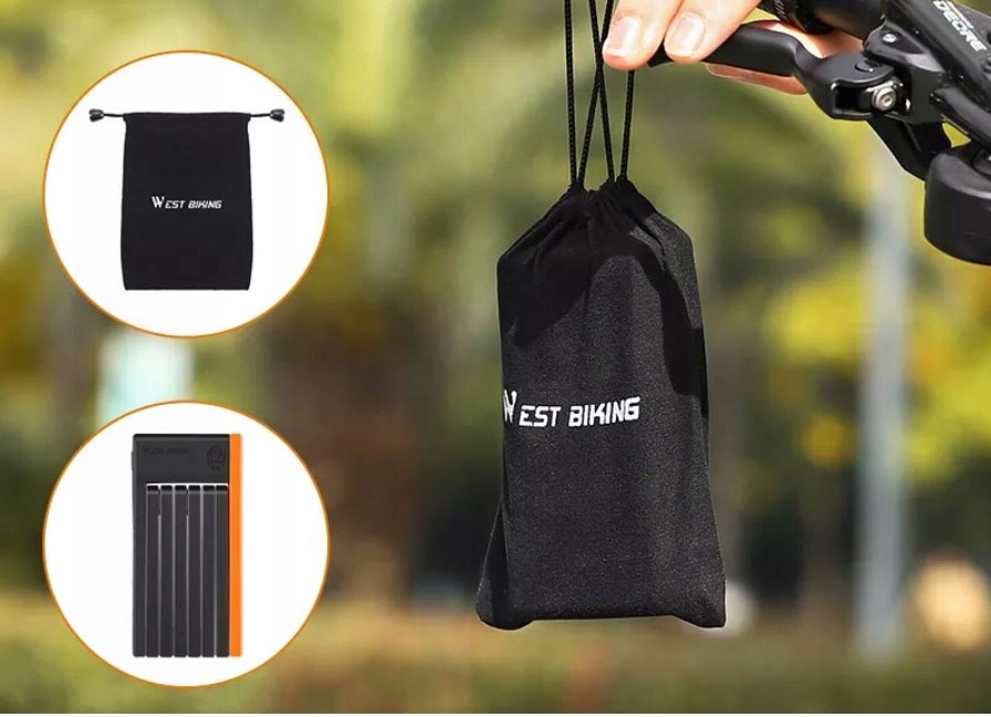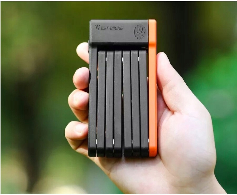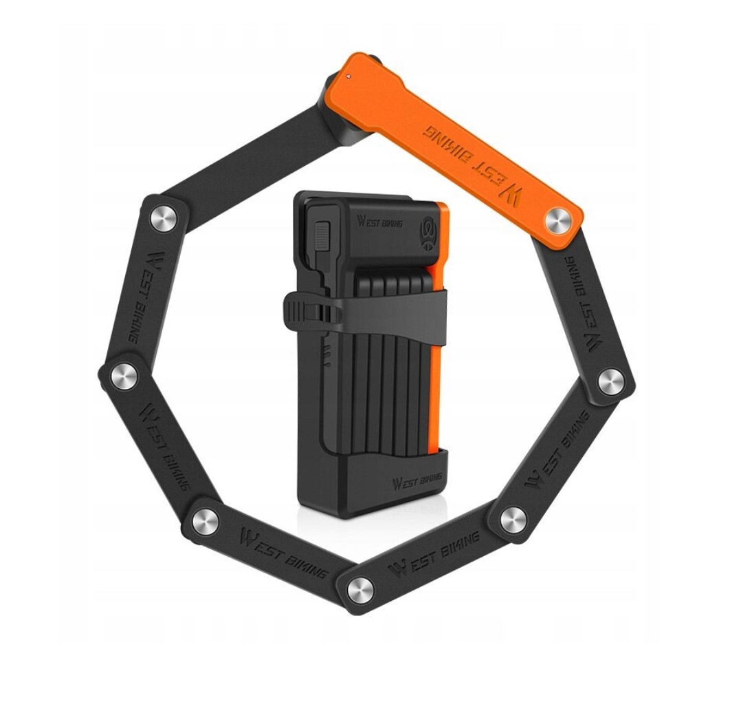 Застежка West Biking изготовлена из восьми стальных панелей 6 мм на прочных соединениях, что обеспечивает высокий уровень безопасности. Замок велосипеда закрыт крышкой из АБС-пластика, защищающей велосипед от царапин. Общая толщина соединений составляет 6,4 мм.