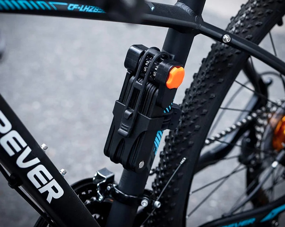 Складной велосипедный замок — лучший и простой способ защитить велосипед от кражи. Толстые стальные панели очень сложно разрезать за короткое время, а 4-значный кодовый замок обеспечивает 10 000 комбинаций.