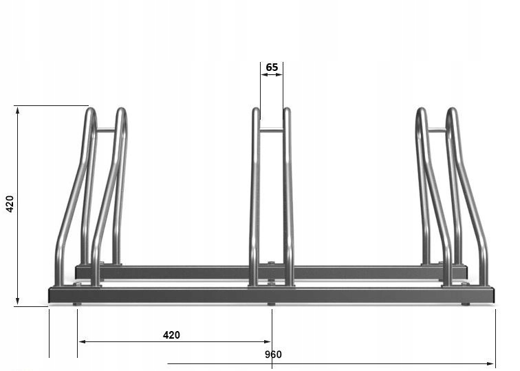 - оптимальное расстояние между стойками (42 см) позволяет свободно и безопасно парковать велосипеды независимо от их размера и типа