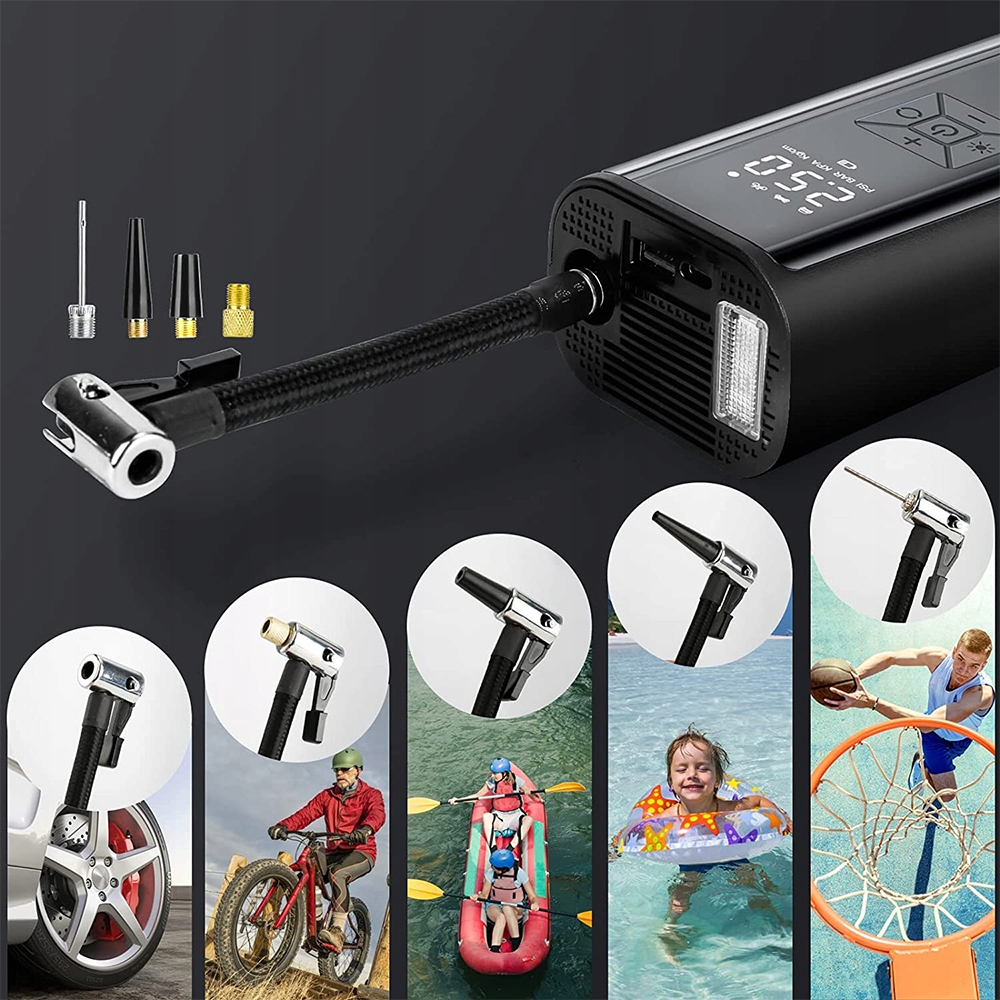 Этот электрический воздушный насос поддерживает давление до 150 фунтов на квадратный дюйм для достижения быстрой зарядки за 10 секунд (диапазон давления наддува0,2 ~ 10,3 бар/3-z50 фунтов на квадратный дюйм). Вы можете установить давление в шинах, и когда он закончит накачиваться, он автоматически остановится.