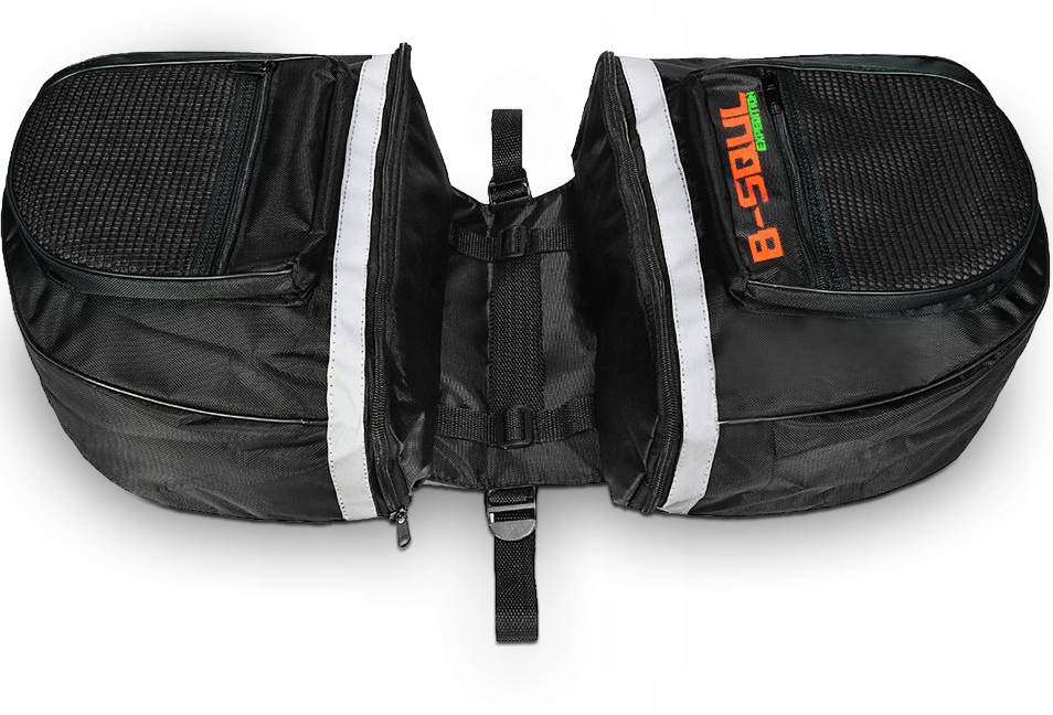 Крепится ремнями-липучками. Он имеет 2 просторных основных отделения и 2 поменьше, которые позволяют упаковать в него множество вещей. Сумка отделана светоотражающими элементами, что повысит вашу безопасность во время вечерней прогулки.