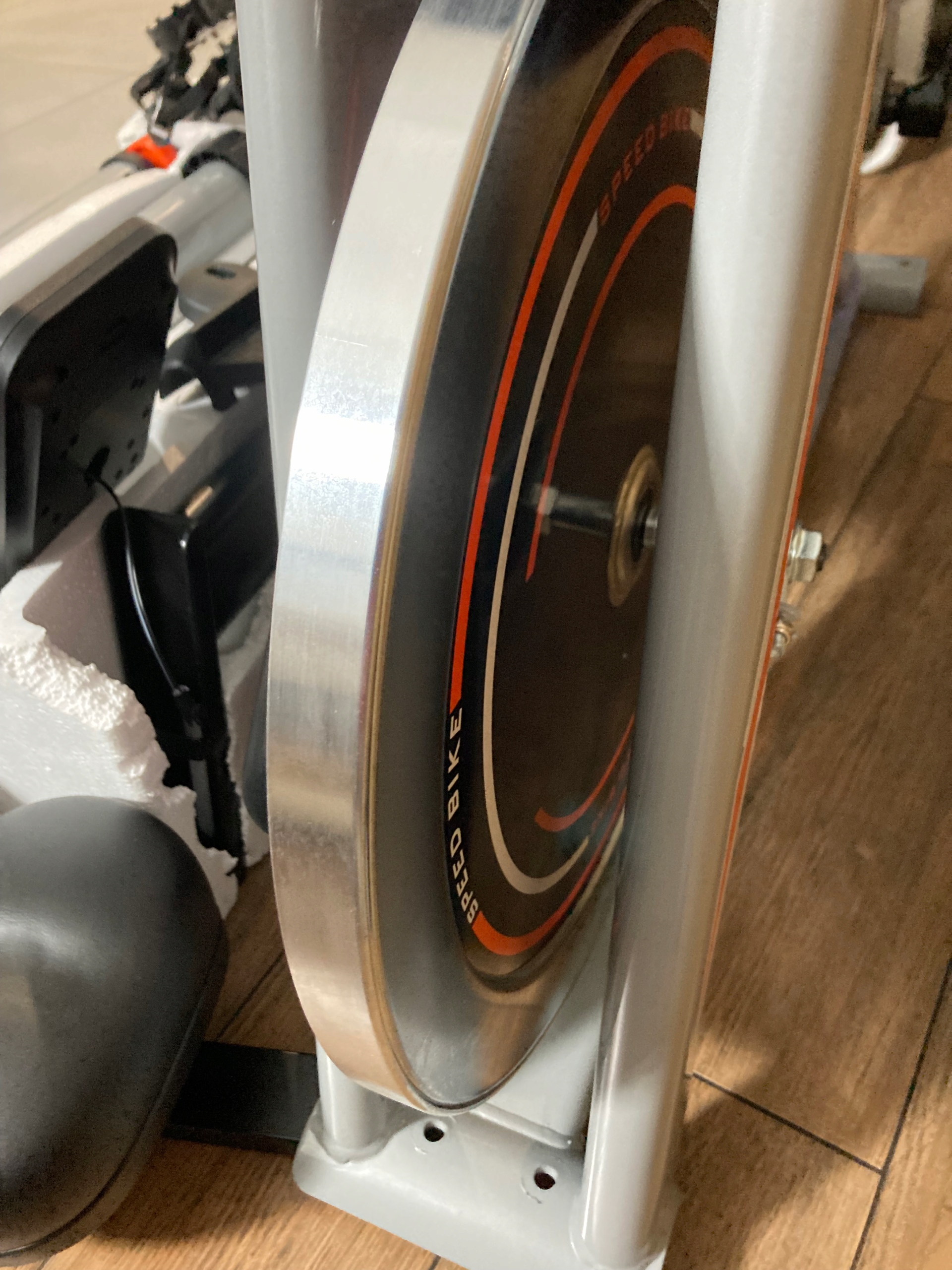 ПРИМЕЧАНИЕ: Товар выставочный с витрины магазина, может иметь следы разборки, мелкие царапины или загрязнения. На пластиковую подставку для планшета или телефона деликатная очистка. The last photos show the real condition of the product. Упаковка может быть повреждена (на качество товара это не влияет, это складская продажа). Инструкции по эксплуатации нет, но велосипед собран на 70% и очень интуитивно понятен, поэтому сборка не должна стать проблемой.