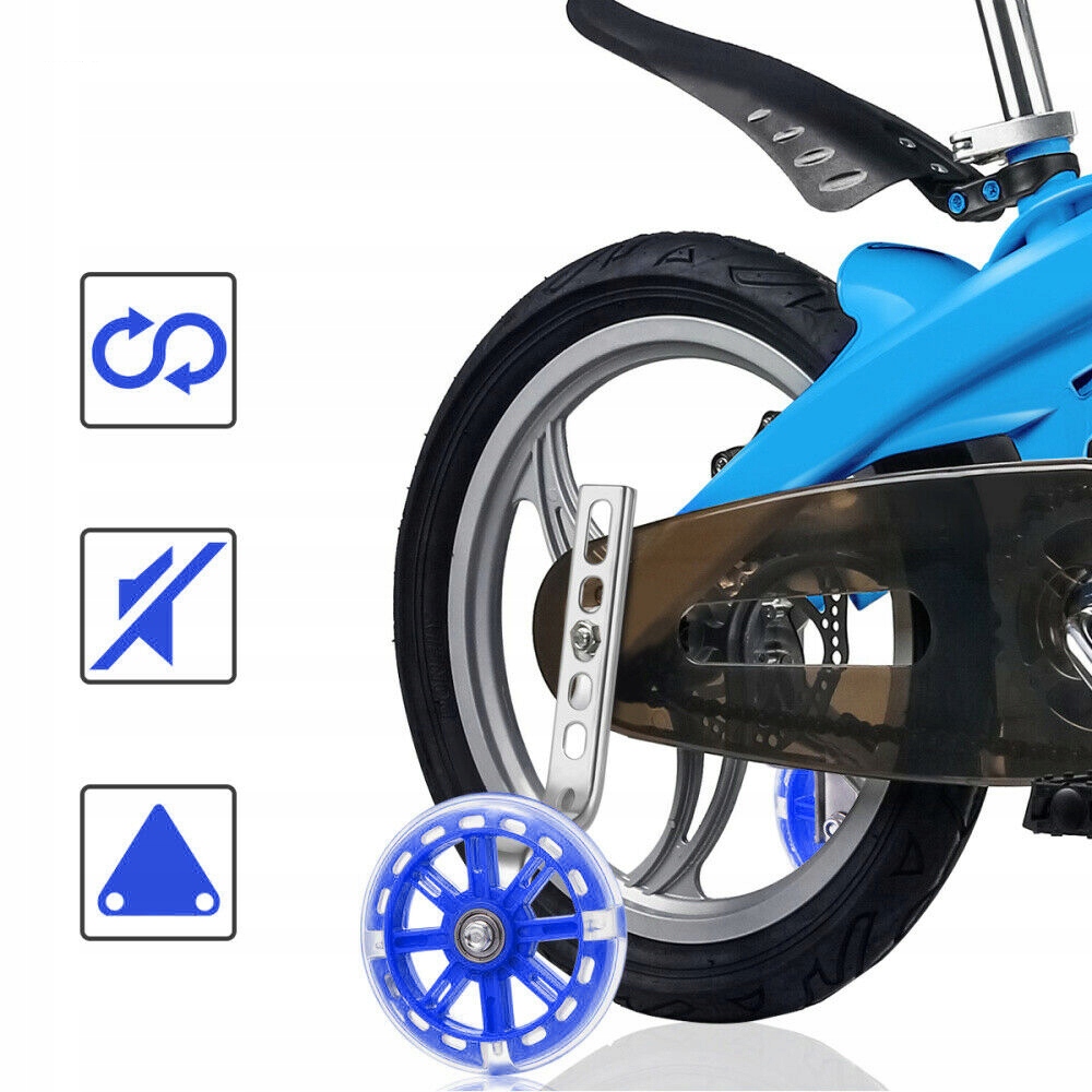 - Обучающие колеса будут светиться во время езды, что сделает вашего ребенка более заметным и безопасным ночью или в темноте. Более того, крутой дизайн с подсветкой заинтересует детей в обучении езде на велосипеде.