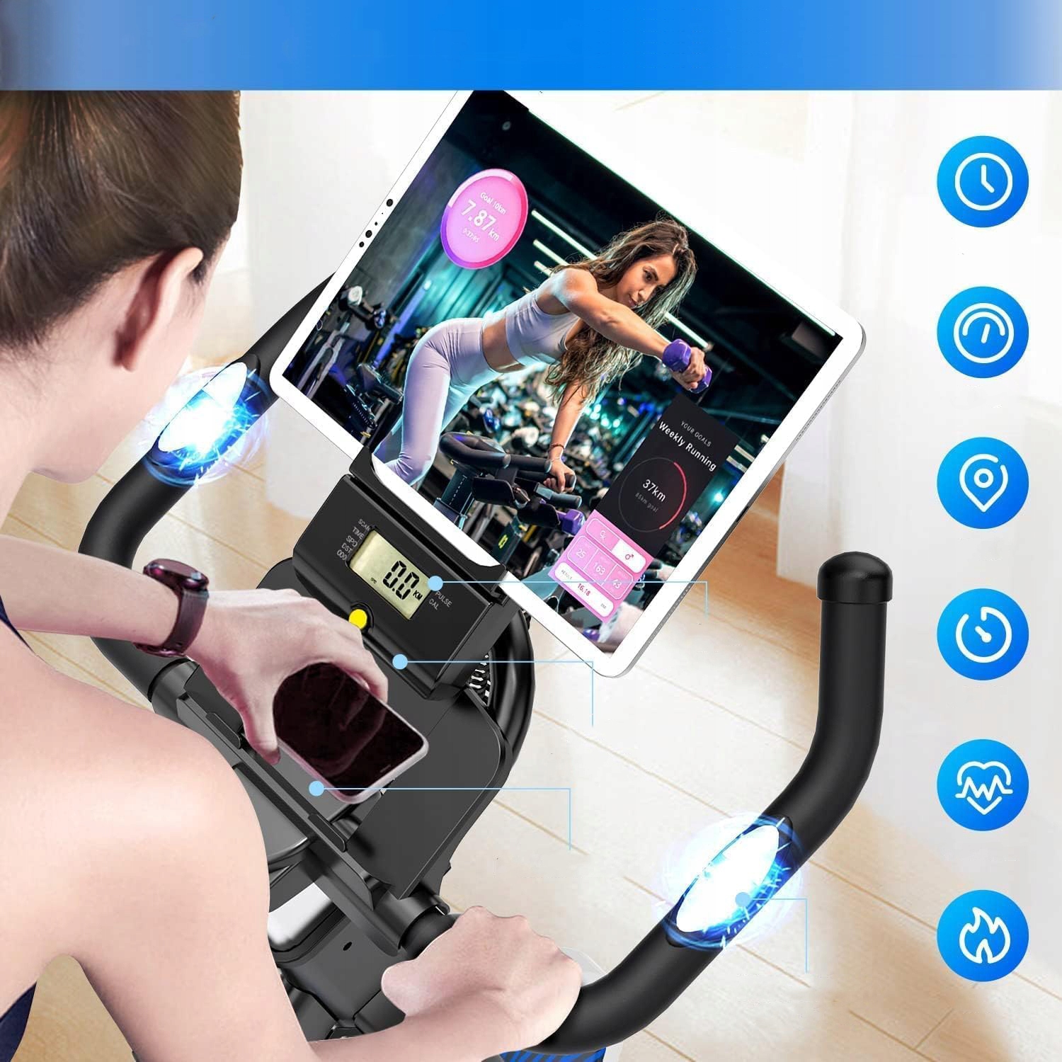✅ Новый цифровой ЖК-монитор точно отображает данные тренировки, включая продолжительность, скорость, расстояние, общий пробег (одометр), частоту сердечных сокращений и оценку сжигания калорий. Датчик сердечного ритма, расположенный на руле, контролирует частоту сердечных сокращений и предоставляет подробные данные о вашем физическом состоянии.