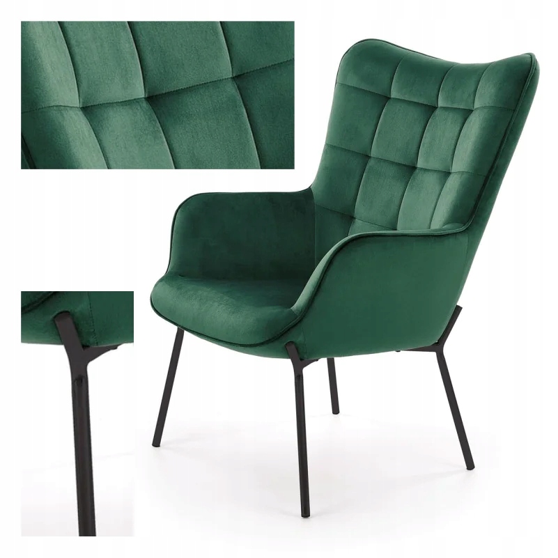 Велюровое кресло для гостиной Лофт Бутылочно-зеленый Halmar CASTEL