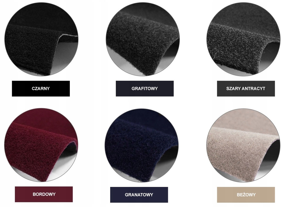 Ниже приведены set велюровые коврики в версии «» с весом 2000 г/м2 с толщиной около 0,8 см, обрезанной сильной и прочной пряжей в 14 цветах на выбор. Ковры, разработанные и тщательно изготовлены Lasota, адаптированы к форме пола вашего автомобиля, упомянутого выше. Дно ковров покрыта слоем грубой резины, предотвращающего и скольжения. Водители сшиты на ковре, расширяя долговечность коврика.