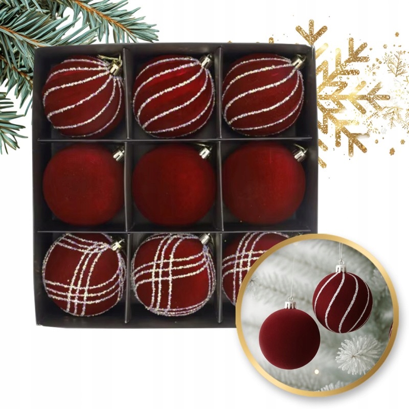 ⭐НАБОР ИЗ 9 ДЕКОРАТИВНЫХ ШАРОВ С БОРДОВЫМИ ВЕЛЮРОВЫМИ ПОДВЕСКАМИ⭐