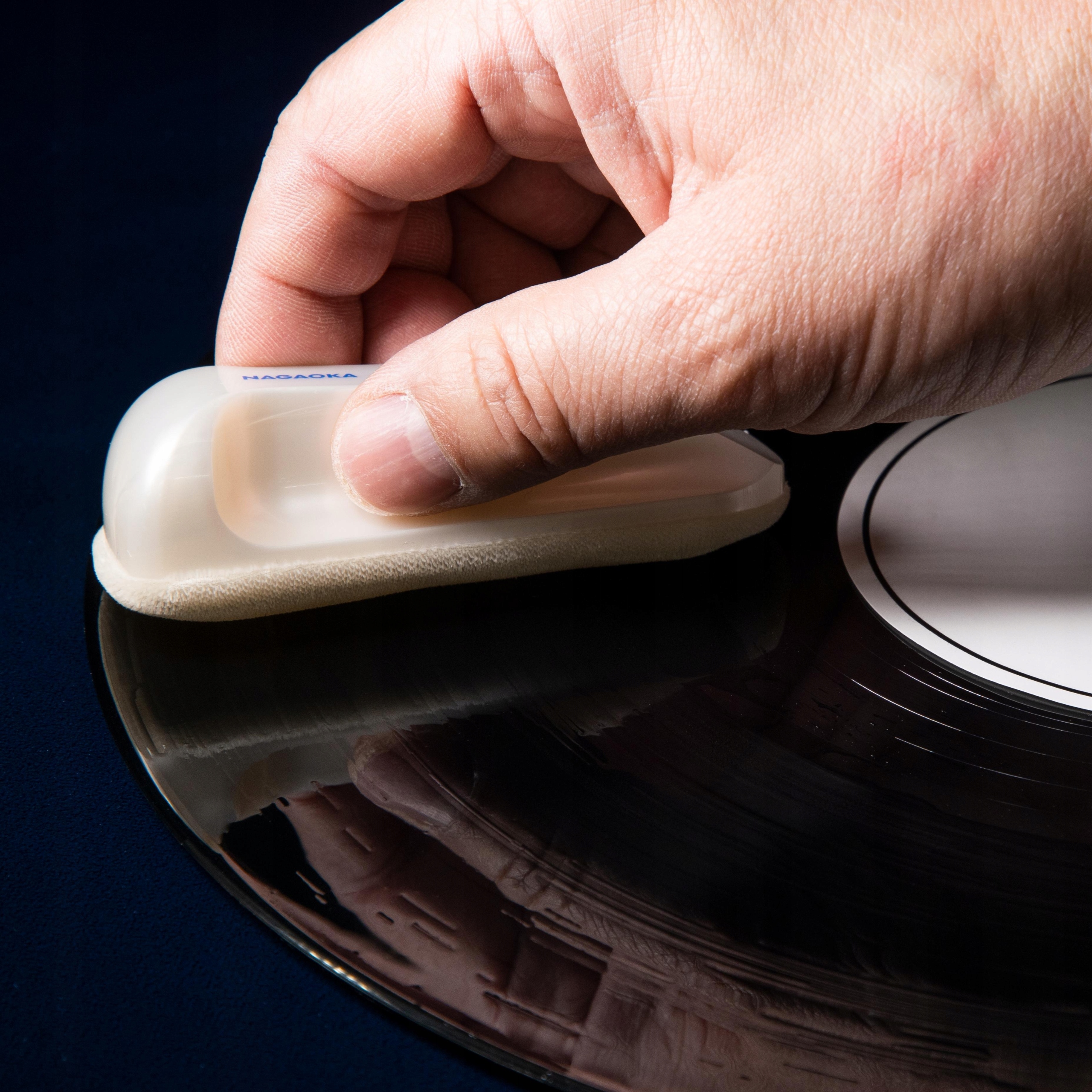 NAGAOKA ARGENTO Wet — велюровая щетка для влажной чистки аналоговых пластинок.