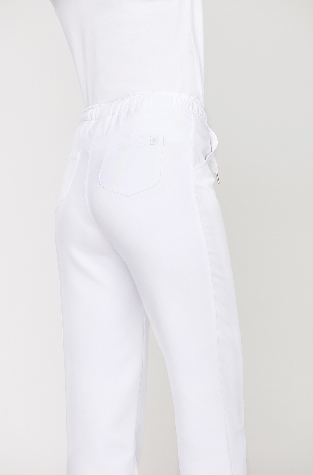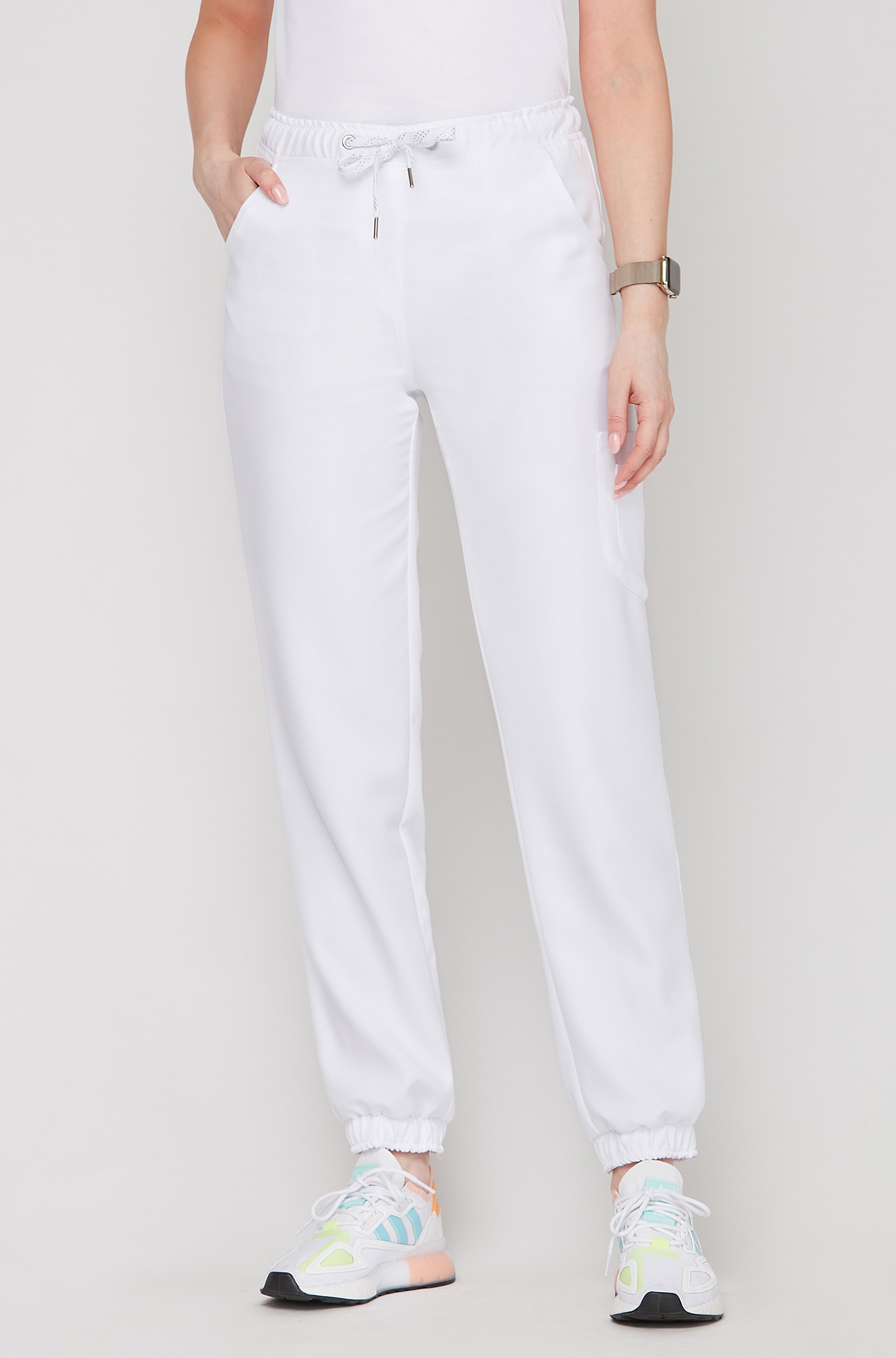 бегуны из формы вены изготовлены из высококачественной ткани с вискозой и эластаном. Благодаря этому, униформа приятно в контакте с кожей, воздушной, мягкой и эластичной. Добавление полиэфирных волокон делает медицинские брюки прочными, не теряйте цвет во время промывки, быстро высыхают и легко гладят. Создайте идеальный медицинский набор, выбрав, например, медицинскую толстовку Emily в том же цвете. Цвет - белый.
