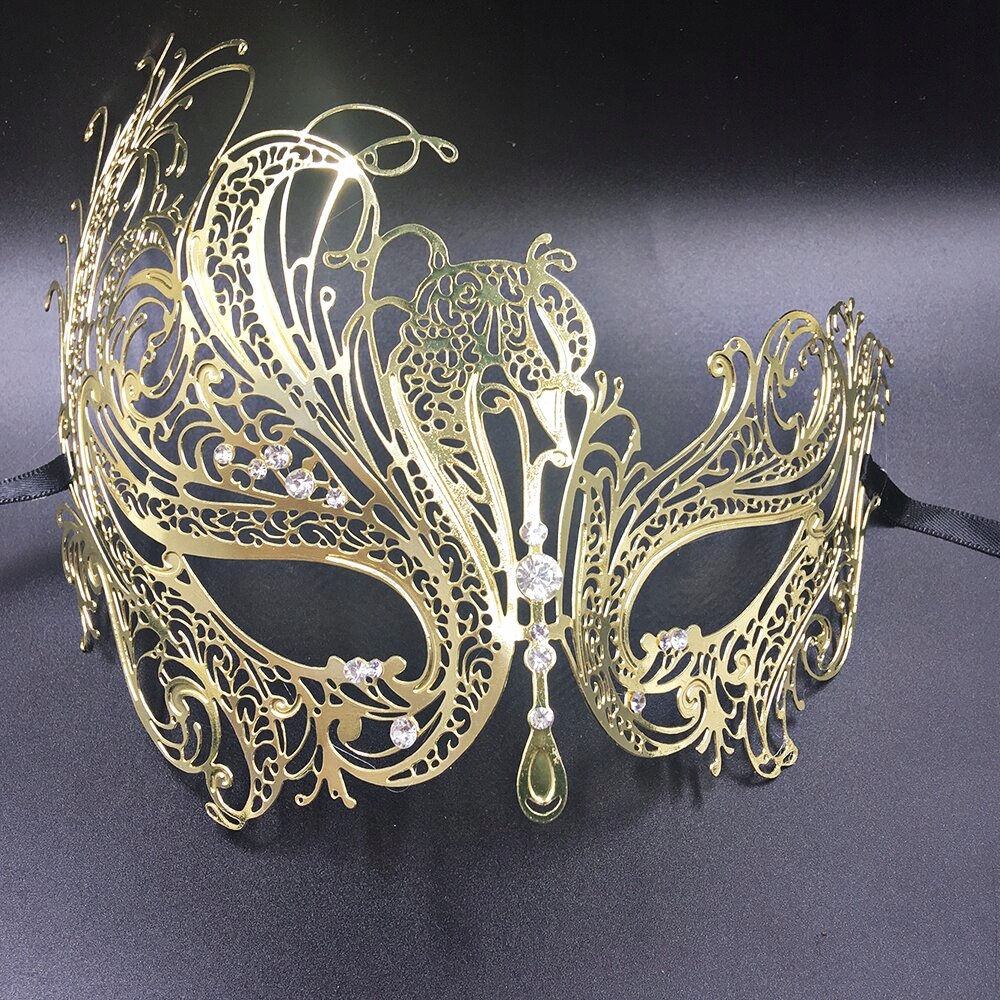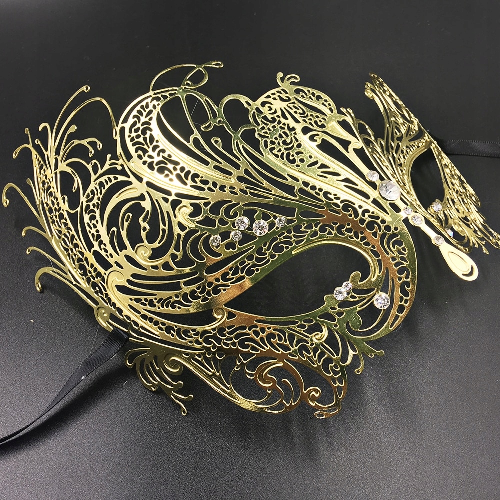 Венецианская бальная маска. Женский металлический золотой костюм элегантный