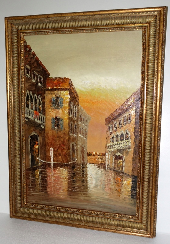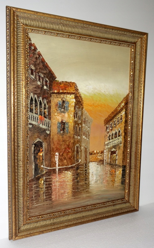 Оформление представляет собой ажурную деревянную раму. украшен тонким декором цвета старого золота. Все это в сочетании с прекрасными видами и намеком на Венецию добавляет шика и элегантности; делает картину более эстетичной в вашей гостиной.