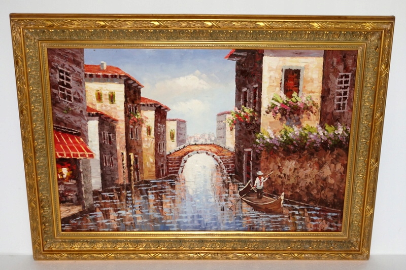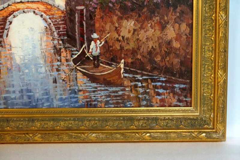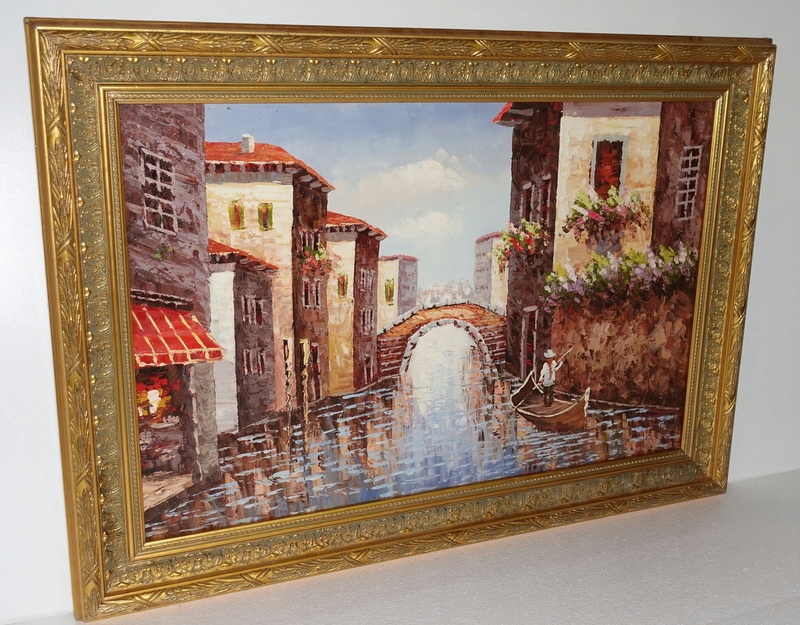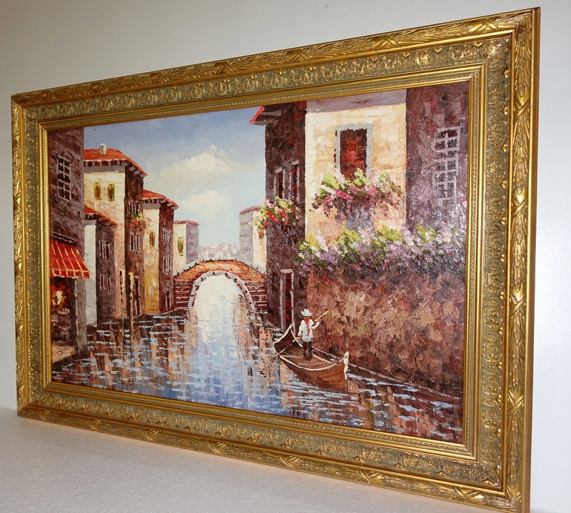 Оформление - ажурная деревянная оправа. рама украшена нежным декором цвета старого золота. Все это в сочетании с прекрасными видами и намеком на Венецию добавляет шика и элегантности; делает картину более эстетичной в вашей гостиной.
