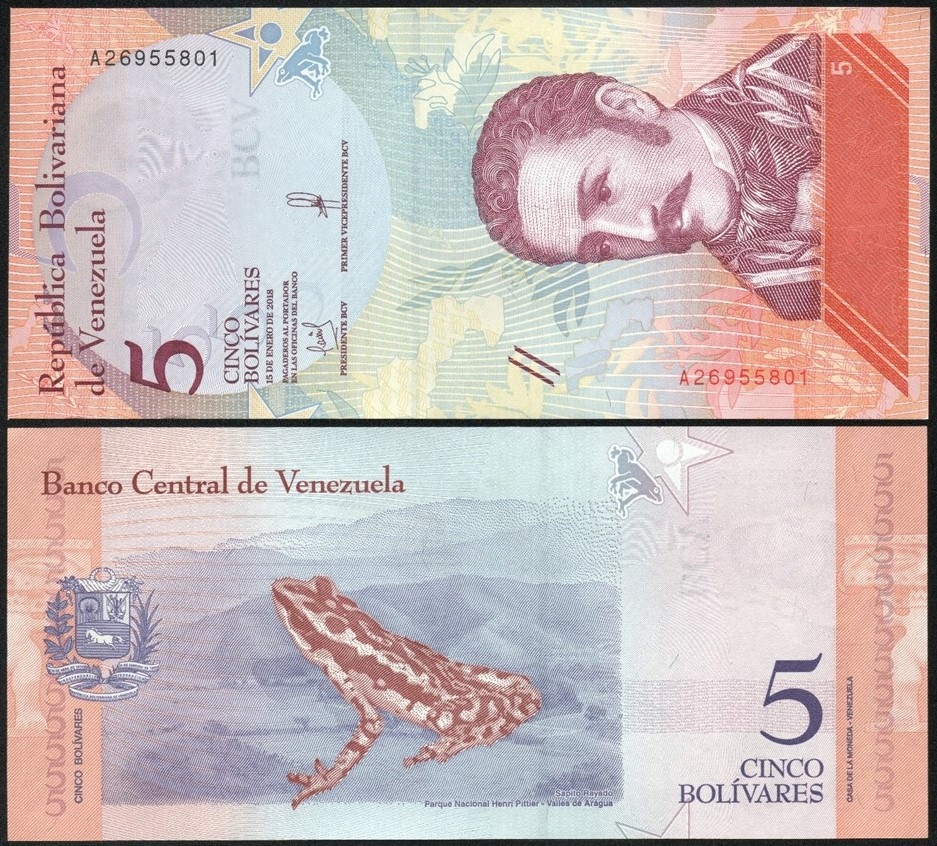 Венесуэла 5 БОЛИВАРЕС P-102 UNC 2018 г.