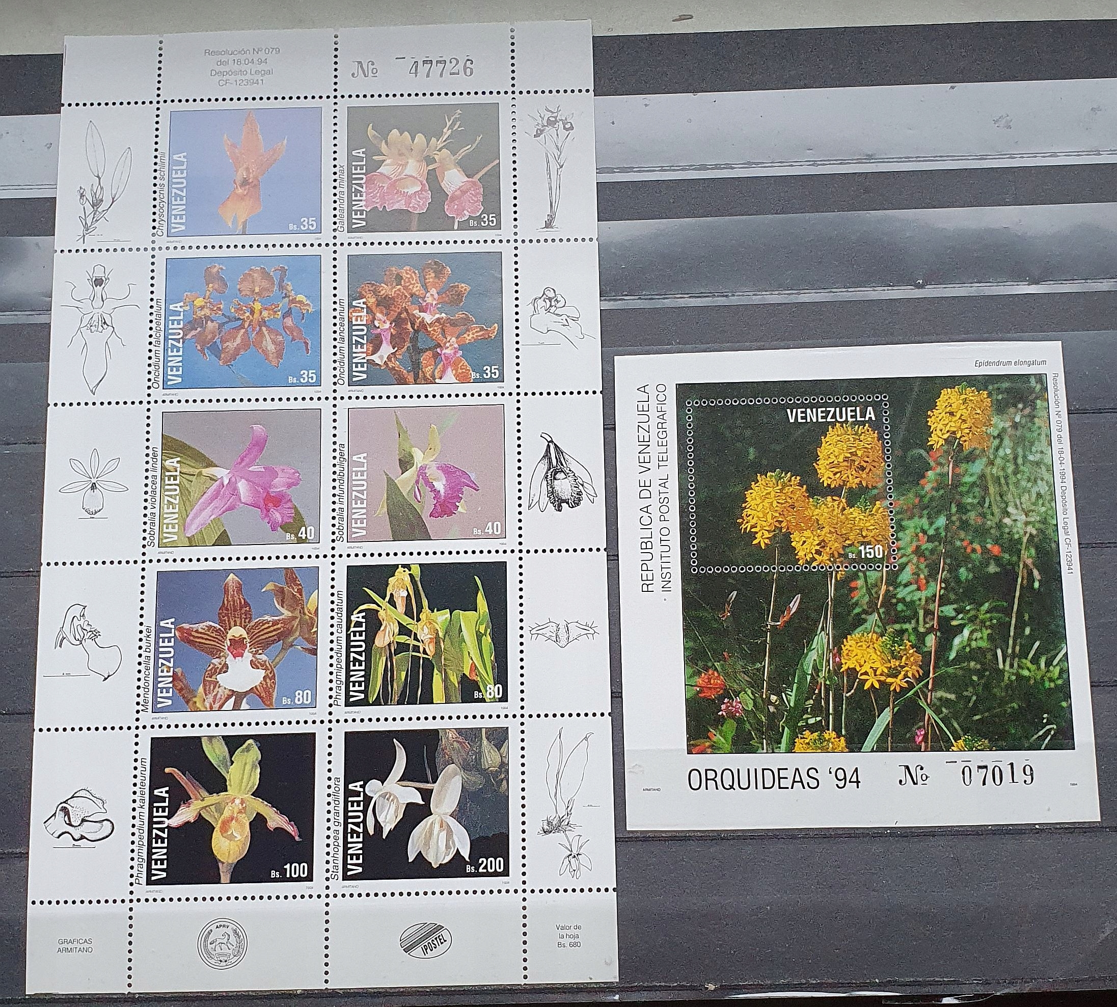 ВЕНЕСУЭЛА ТЕМА ЦВЕТЫ ОРХИДЕЯ ** 1994 МИ 2824-2833 ЛИСТ + БЛОК 44