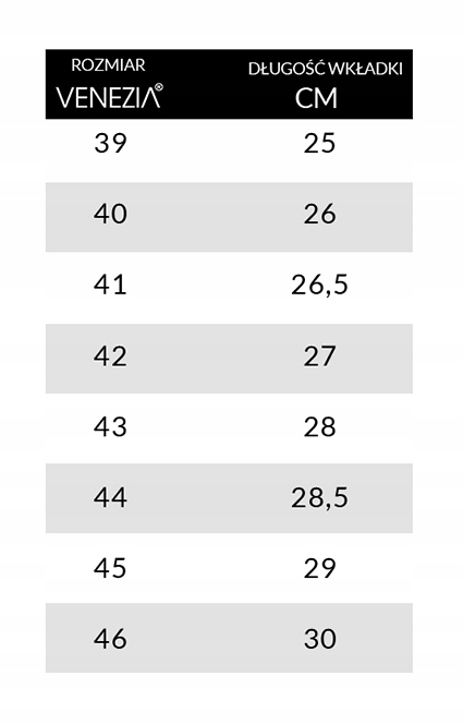 Чтобы правильно выбрать размер обуви, ногу на плоской поверхности должна быть нарисована на плоской поверхности, а затем измерить расстояние от большого пальца до середины конца пятки. Полученная длина ноги следует сравнить со значениями в таблице размеров и выбирать правильный размер. Представленные данные являются приблизительными и предназначены для выбора правильного размера. В некоторых случаях, в зависимости от разреза или модели, фактические измерения могут отличаться от размеров, представленных в таблице. Магазин не несет ответственности за неправильное сопоставление приобретенных продуктов.