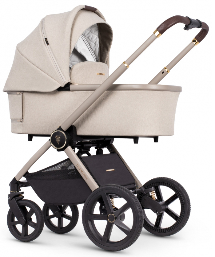 В Venicci Tinum Upline используется магнитное крепление ремни безопасности в коляске, что позволяет быстро и легко закрепить малыша. Вышеперечисленные функциональные возможности наряду с рядом украшений, изысканным декором отличают эту модель.