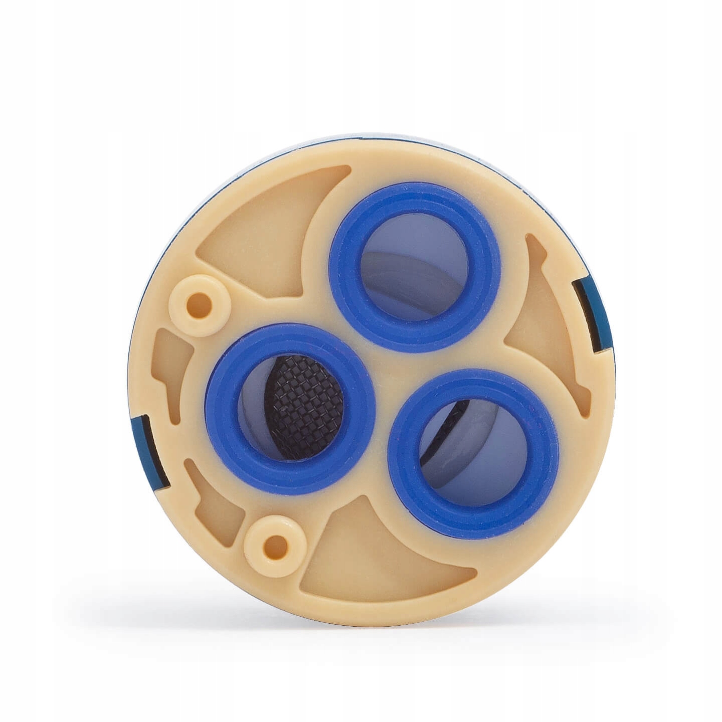 Клапан, смешивающий воду и регулирующий ее давление, используется в различных типах смесителей для душа и ванны, душевых панелей и многих других арматур. Корпус изготовлен из прочного материала, внутри работает керамическая головка. Клапан также имеет резиновые уплотнения на выходе.