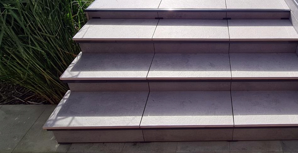 При монтаже проступи необходимо сделать снизу в плите углубление для ее заделки. в профиле, чтобы ограничить перемещение плиты в горизонтальной плоскости. Ступенчатую плитку следует укладывать на площадки SMART.