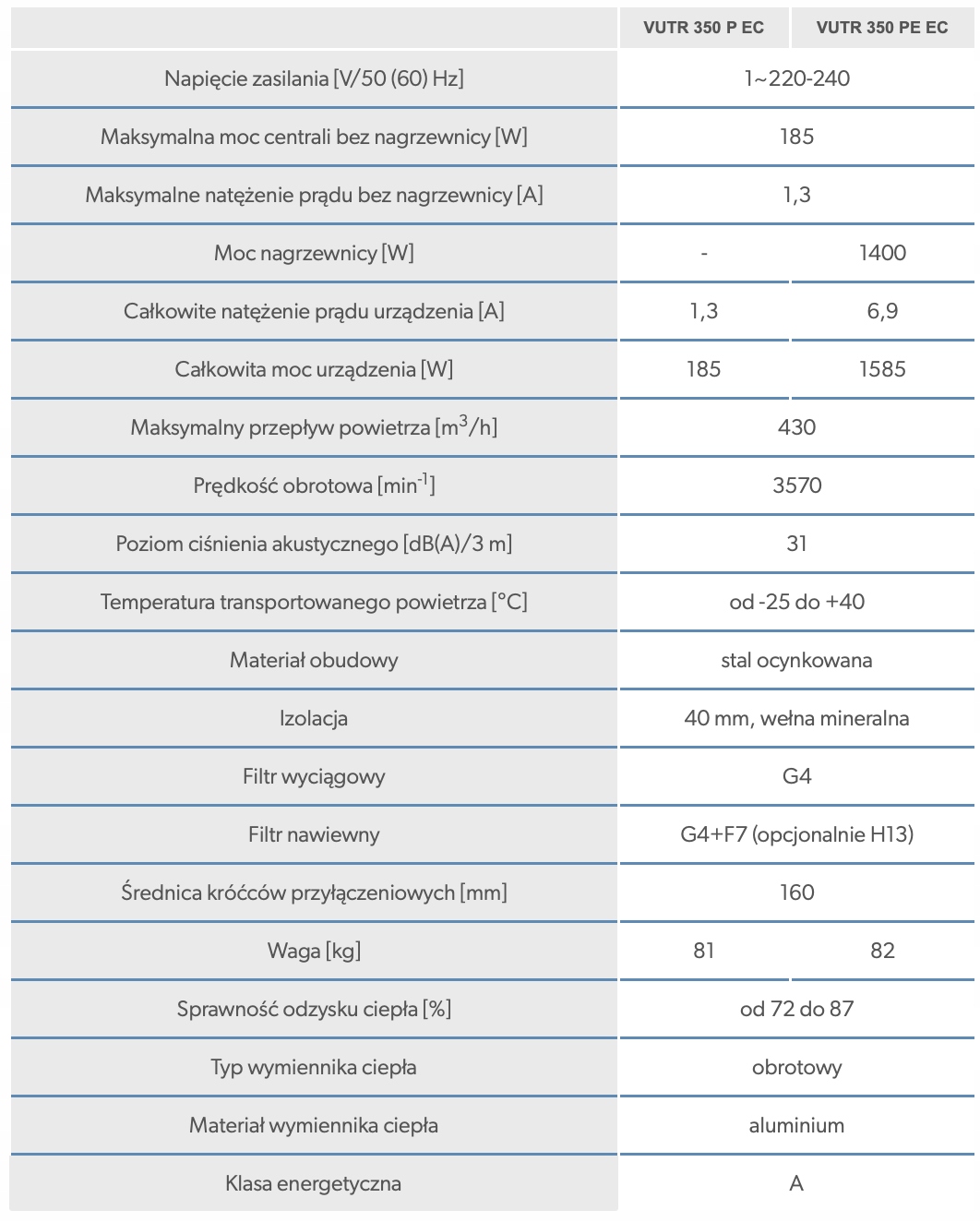 Панели управления Vutr EC оснащены вторичным электрическим обогревателем. Если рекультирование тепла недостаточно для достижения ожидаемой температуры воздуха, обогреватель начинает его нагревать. Нагреватели оснащены устройствами безопасности, чтобы обеспечить безопасную и надежную работу штаб -квартиры.