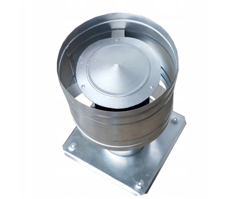 Изготовлен из оцинкованного листового металла. Использование колпака призвано стабилизировать поток воздуха из вентиляции, защитить внутреннюю часть дымохода от атмосферных осадков, улучшить эстетику торца дымоходной системы и отпугнуть потенциальных злоумышленников, например, птиц.