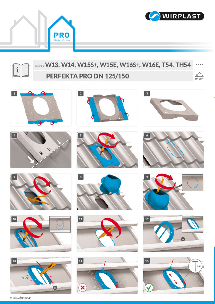 PERFEKTA PLUS DN 125 - Вентиляционный дымоход в сборе с профилированным проходом на крыше, монтируемый непосредственно на металлочерепицу. Специальные каналы отводят конденсат (конденсат) на кровельное покрытие.
