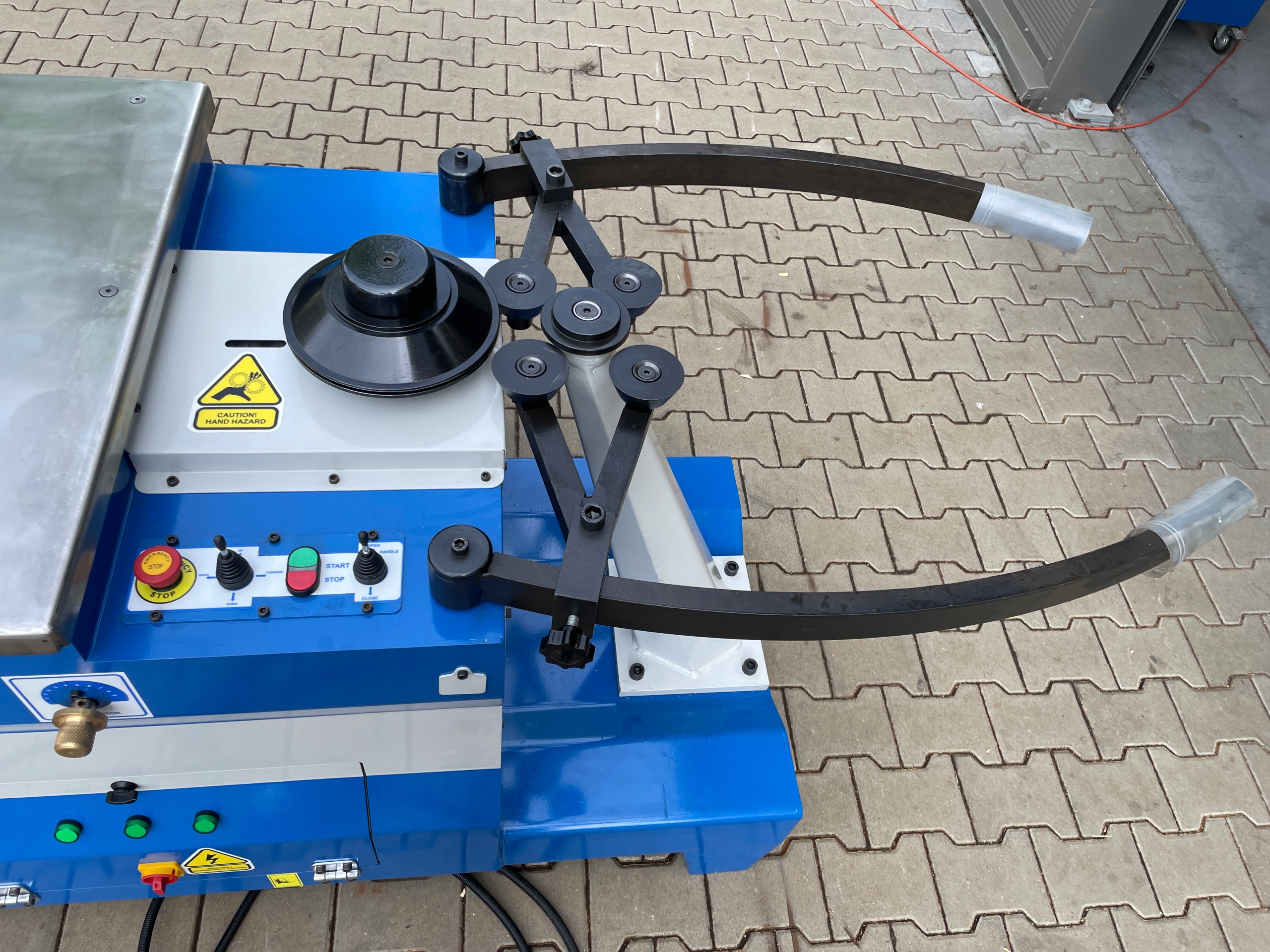 Станок предназначен для производства сегментных колен, редукций, крышек и многих других круглых форм. Машина характеризуется высокой эффективностью производства. Машина делает две мужские и женские молнии, а затем застегивает молнию, создавая очень прочное и плотное соединение. Чаще всего используется на производственных предприятиях в сфере вентиляции и кондиционирования. Коленный станок представляет собой стальную конструкцию, соединенную сварными швами. Формующие ролики изготовлены из высококачественной стали, что замедляет истирание при длительной работе. Простая в использовании машина обеспечивает экономичную и быструю работу, ею могут управлять два человека одновременно.