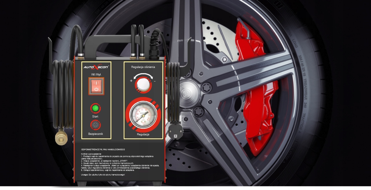 - -встроенная система мониторинга давления: для заполнения бак тормозной жидкости имеет устройство для контроля давления. Давление можно отрегулировать с помощью ручки в баре 0,7-2,5. Если давление не может быть установлено или если насос всасывает воздух, он автоматически отключается. Бутылка для переработки находится внутри машины, которая облегчает транспорт.