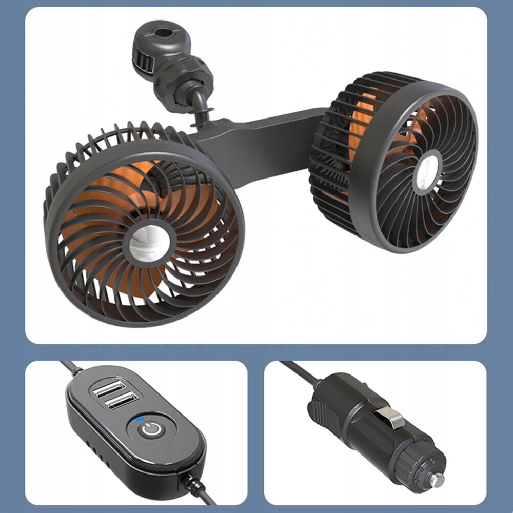💯💯12-24 В двойной электрический вентилятор для поддержки автомобильного кресла с 3-скоростными режимами, 2 разъемами USB и вращающимся базой 360 °