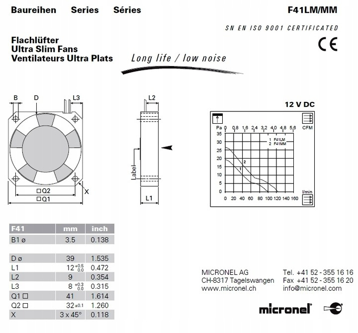 Вентилятор размерами 41x41x12 мм,Швейцарская компания Micronel LTD.
