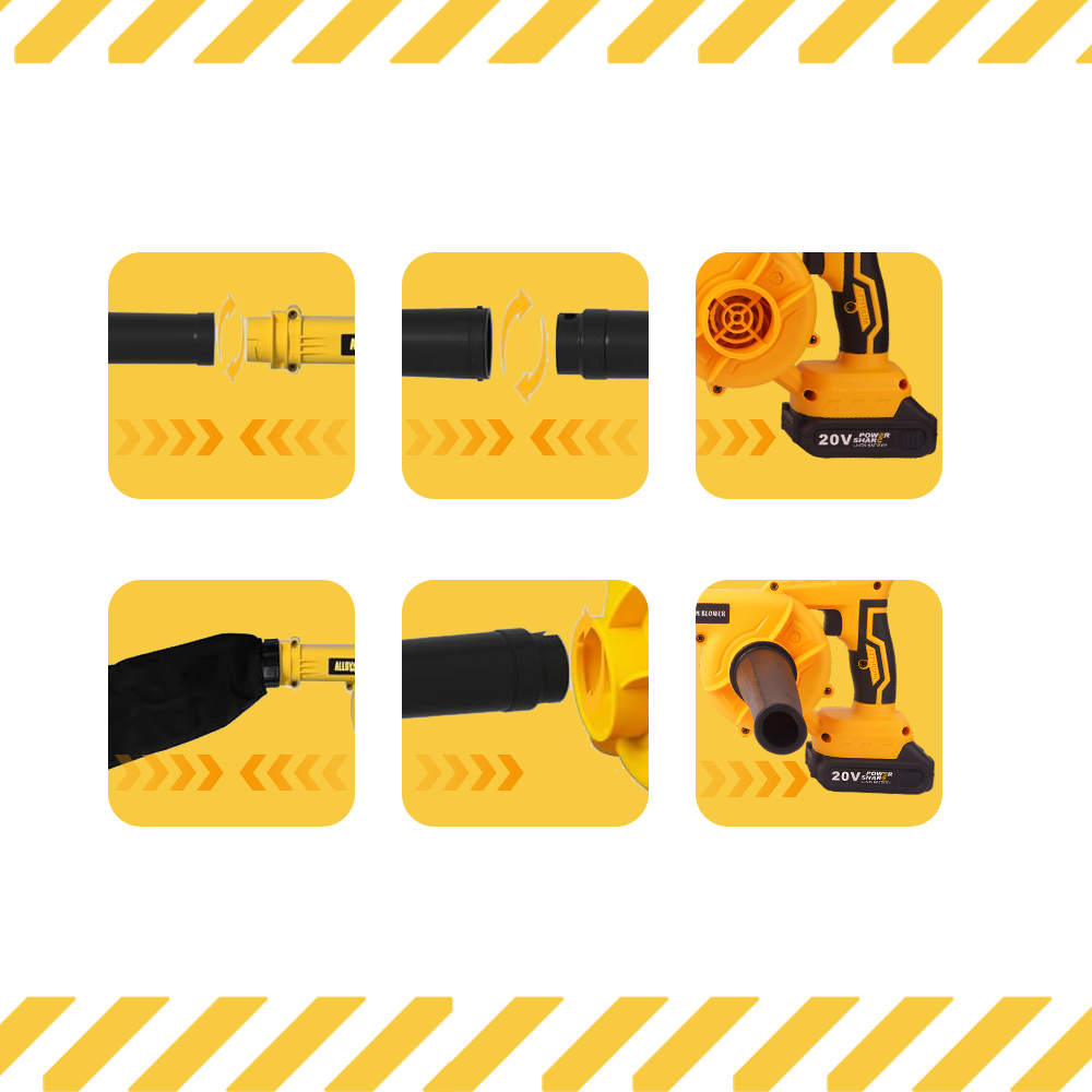 Регулируемая воздуходувка, люди каждой высоты найдут удобный опыт использования. Плоские форсунки отлично подходят для взрыва свободных листьев с широким движением. Круглые форсунки идеально подходят для ослабления грязи, примесей и влажных листьев