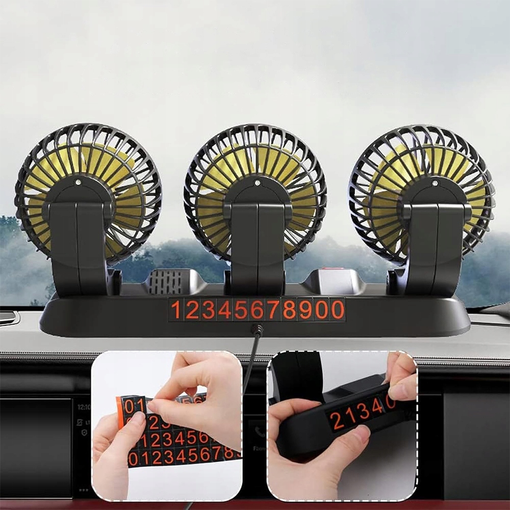Автомобильный вентилятор 12 В с тремя головами и вращающимся основанием 360 °