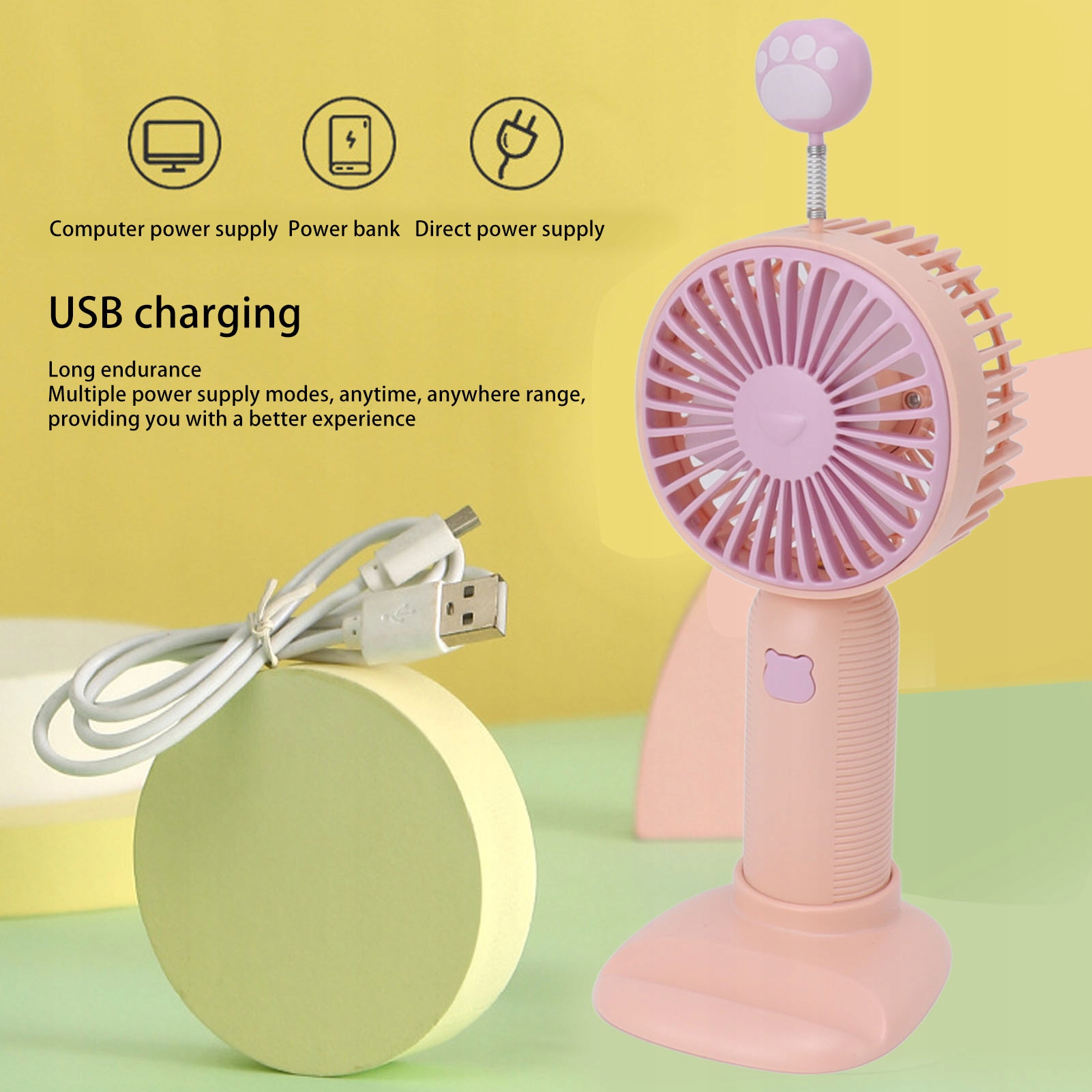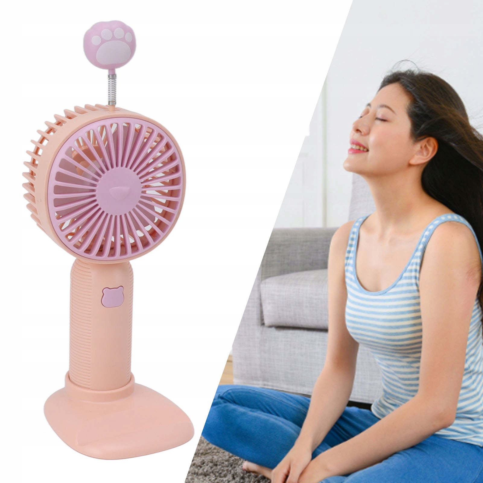Ручной мини-портативный настольный вентилятор с USB-аккумулятором и подставкой для использования в помещении, розовый цвет