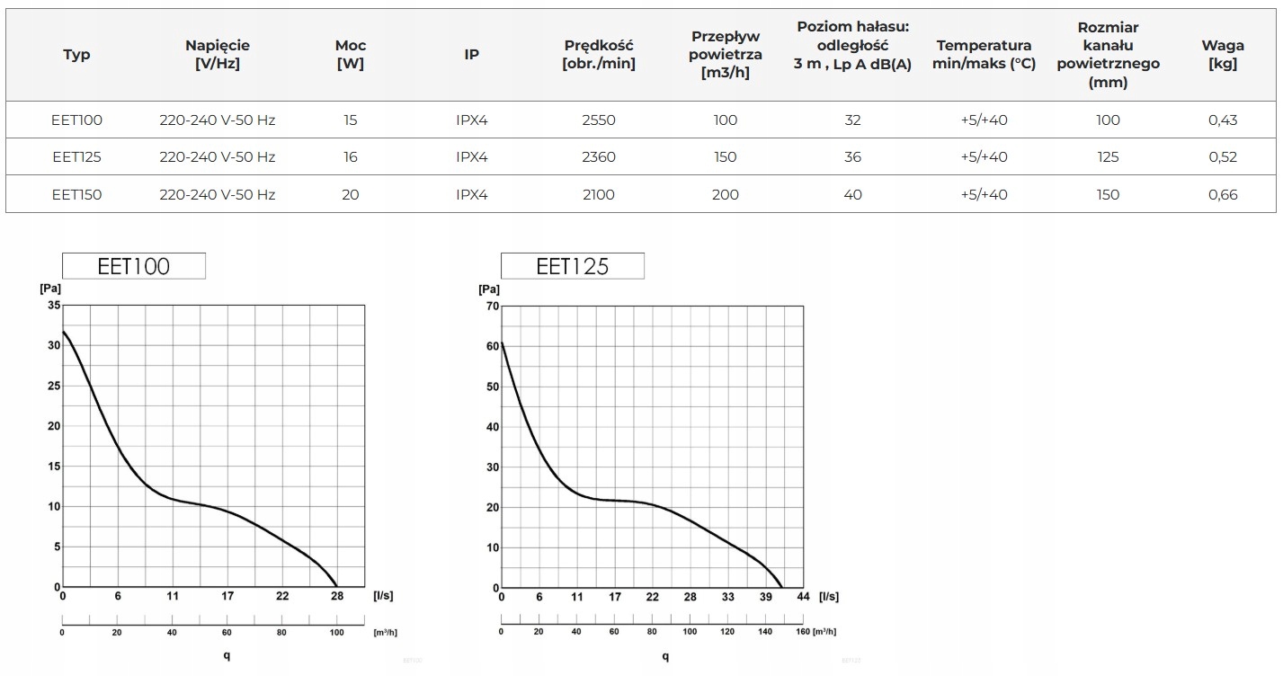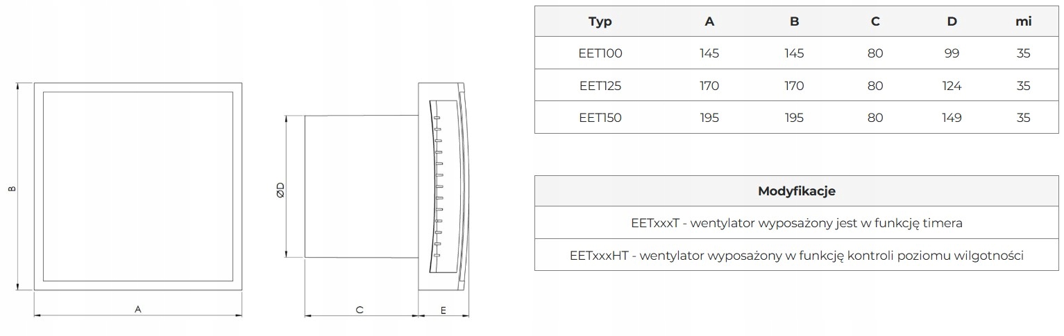 EET — идеальное решение для эффективной вентиляции ванных, туалетов, прачечных, кухонь и других помещений с повышенной влажностью. Благодаря компактной конструкции и эстетичной передней панели они идеально подходят для современных интерьеров, где важна не только функциональность, но и внешний вид.