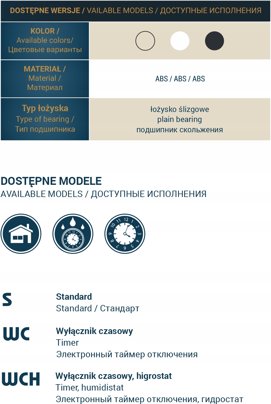 Вентилятор имеет таймер и гигростат, то есть датчик влажности, благодаря которому он работает еще эффективнее. Таймер поддерживает работу вентилятора в течение заданного периода времени после того, как мы его предположительно выключим, поэтому мы можем быть уверены, что когда мы выйдем из комнаты, вентилятор продолжит эффективно проветривать помещение в течение времени, установленного на часах. Датчик уровня влажности, то есть гигростат, заставляет вентилятор включаться и выключаться в соответствии со значениями, установленными на потенциометре, что гарантирует избавление устройства от лишней влаги в помещении, снижая риск появления плесени и грибки.