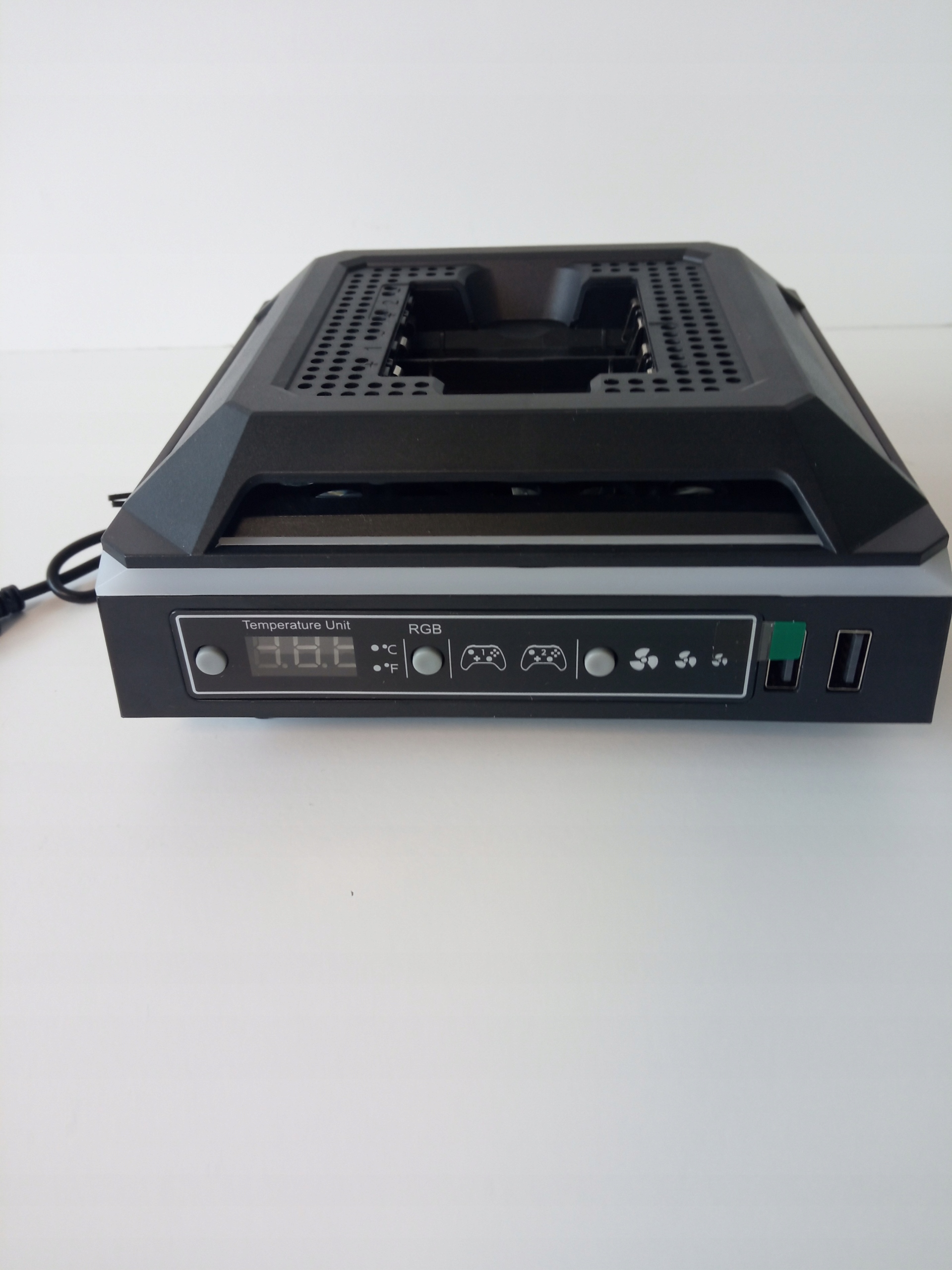 Zaprojektowany z myślą o wymagających graczach, ten wentylator zapewnia kompleksową ochronę przed przegrzaniem podczas długich sesji gamingowych. Интеллектуальный дисплей температуры позволяет отслеживать состояние консоли в режиме реального времени с возможностью переключения между шкалами Цельсия и Фаренгейта. Трехуровневая регулировка скорости вентилятора дает вам полный контроль над интенсивностью охлаждения, которую можно настроить в соответствии с вашими текущими потребностями. Входящие в комплект две литиевые батареи емкостью 2640 МВтч гарантируют сотни часов игрового процесса и заряжаются всего за 2,5 часа благодаря встроенной зарядной станции. Система запоминает последний выбранный режим RGB-подсветки, экономя время при каждом ее запуске.