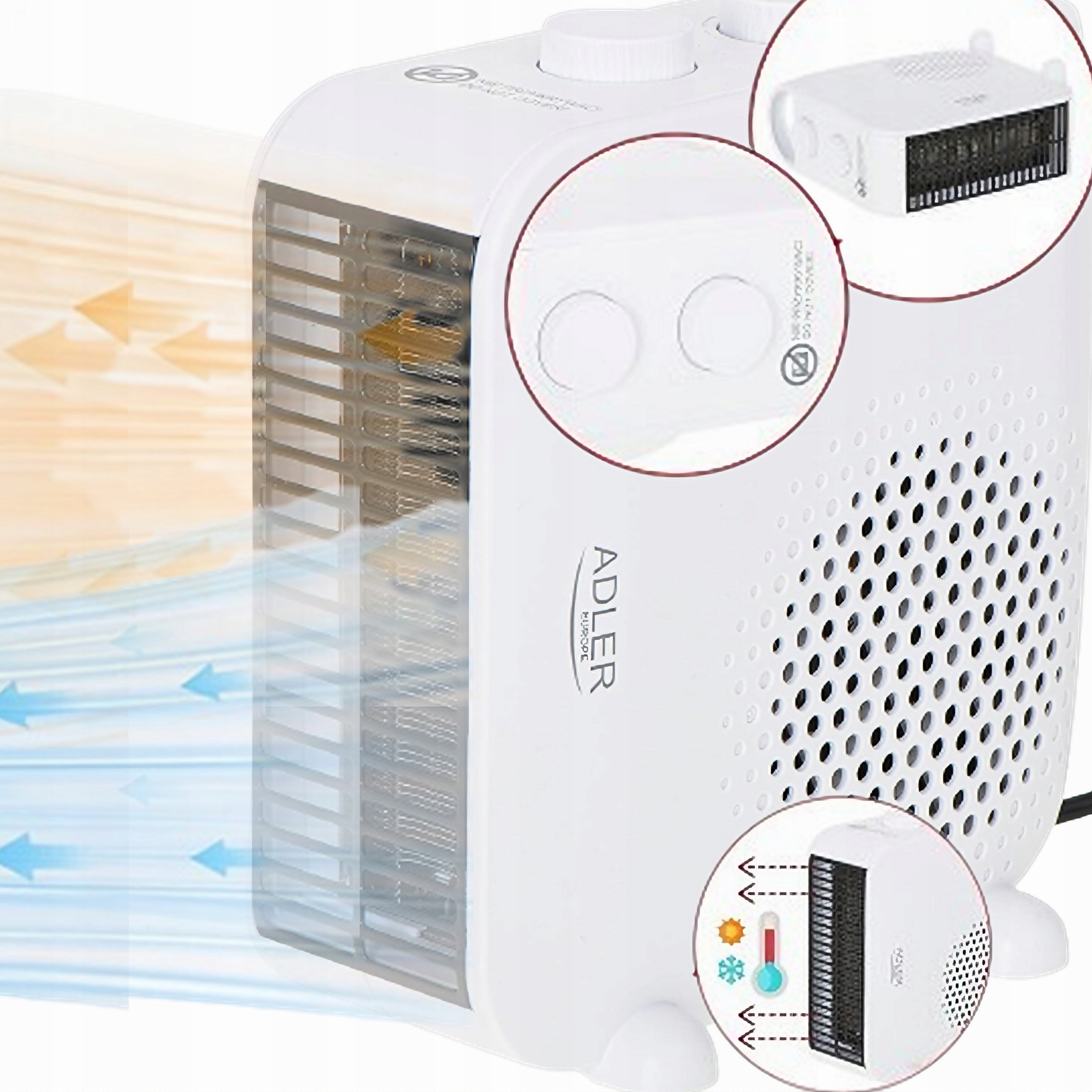 Ответ: Отопитель АДЛЕР работает как обогреватель и вентилятор . Он может нагреваться на двух уровнях мощности (1000 Вт и 2000 Вт) и охлаждаться холодным воздухом. Идеально подходит для использования круглый год.