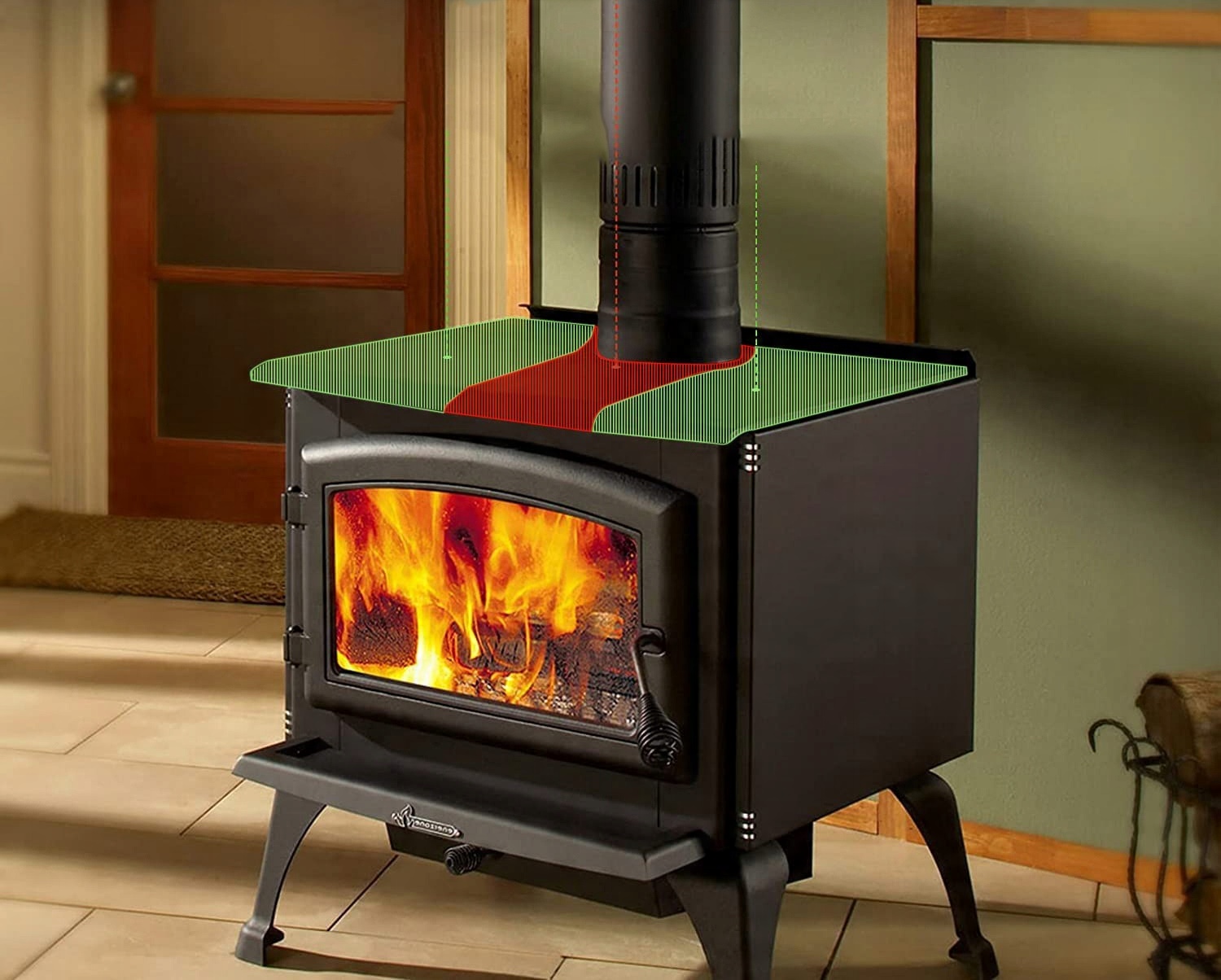 【Неэлектрический】Вентилятор с тепловым приводом преобразует тепловую энергию поверхности печи в кинетическую энергию для вращения и автоматически регулирует свою скорость в зависимости от температуры поверхности печи. Никаких батарей или электричества не требуется. Рабочая температура: 150 – 662°С.