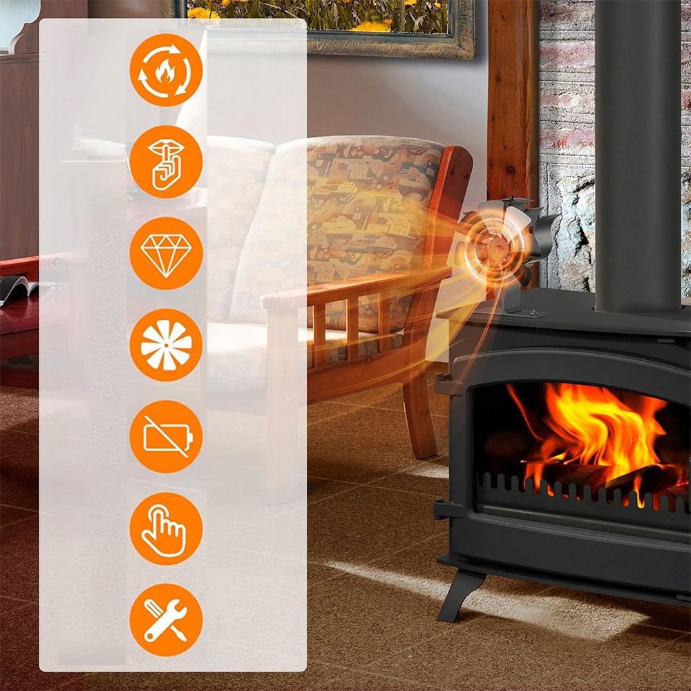 Улучшенный 8-лопастной вентилятор печи: 8-лопастной вентилятор утопленной конструкции и новой формы конвекционного вентилятора быстрее рассеивает тепло, генерирует больше теплого воздуха и повышает эффективность. Наш 8-лопастной вентилятор прошел всесторонние испытания в каминах, щепочных, газовых плитах и т. д. Он меньше деформируется и генерирует тепло быстрее и равномернее, чем другие вентиляторы на рынке.