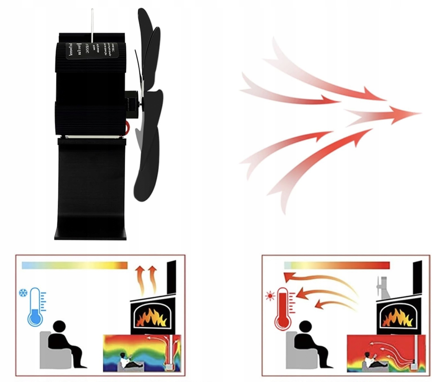 КАМИННЫЙ ТЕРМОЭЛЕКТРИЧЕСКИЙ ВЕНТИЛЯТОР, ТЕПЛОВОЙ ЭНЕРГИИ, 6 ЛОПАСТЕЙ