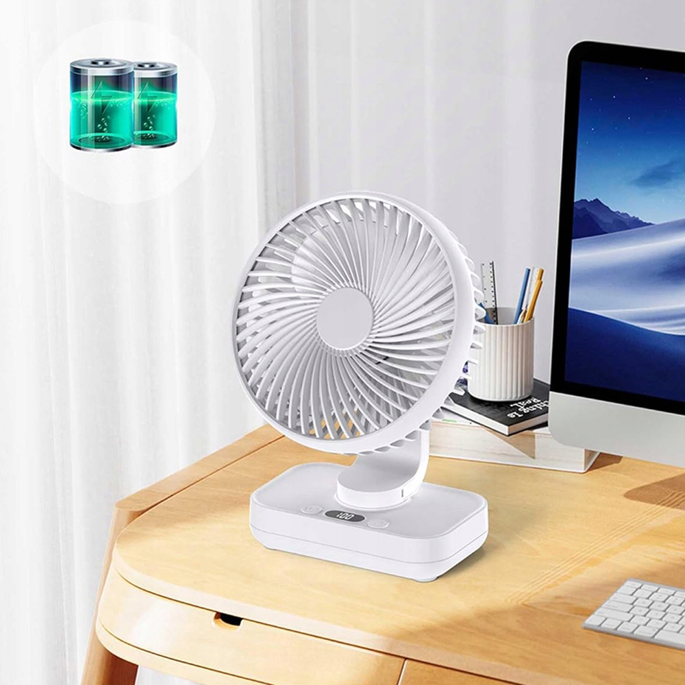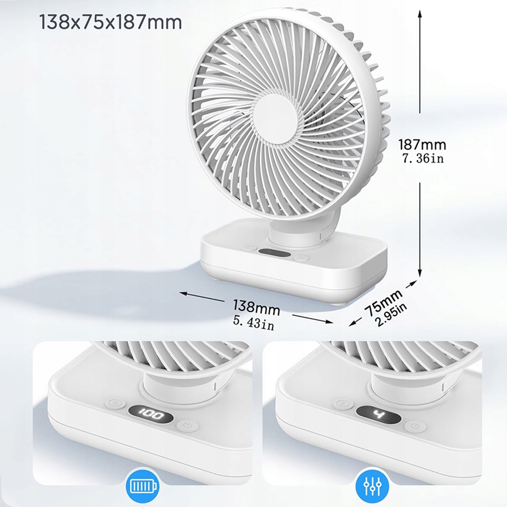 Мини -вентилятор оснащен светодиодным экраном, который контролирует уровень заряда аккумулятора в режиме реального времени. Четыре резиновые ножки в нижней части ног помогают уменьшить вибрации и увеличивать трение, удерживая вентилятор на месте, чтобы гарантировать, что воздушный поток направлен там, где он необходим, и не скользит даже на высокой скорости.