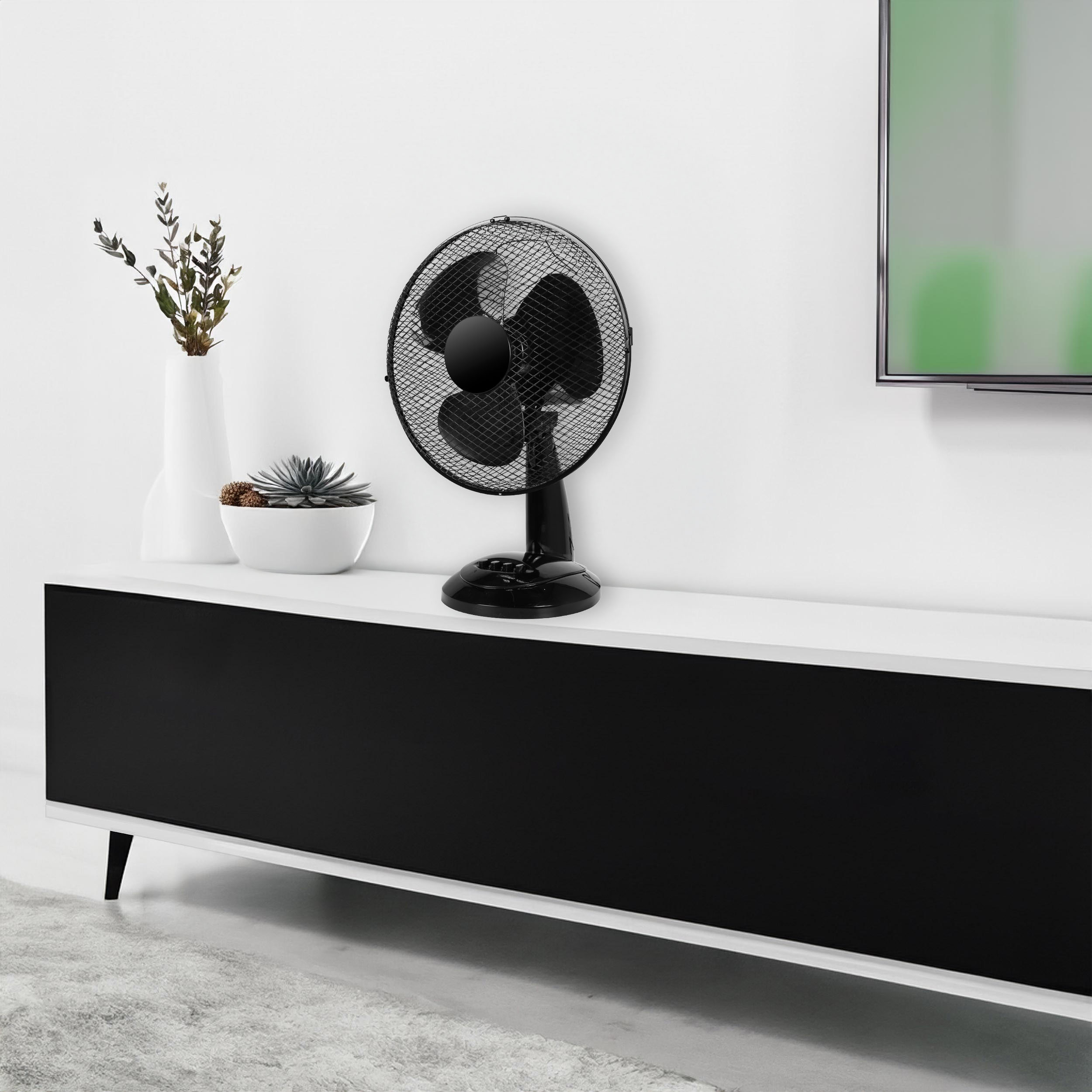 Frio Desktop - отличное решение для жарких дней, идеально подходящее для дома и офиса. При 38W, трех скоростных режимах и колебаниях 90 градусов обеспечивает комфорт и свежесть во всех условиях. из высококачественных материалов, доступных в черном, универсальном цвете , идеально соответствует любому интерьеру, добавив элегантность и функциональность.