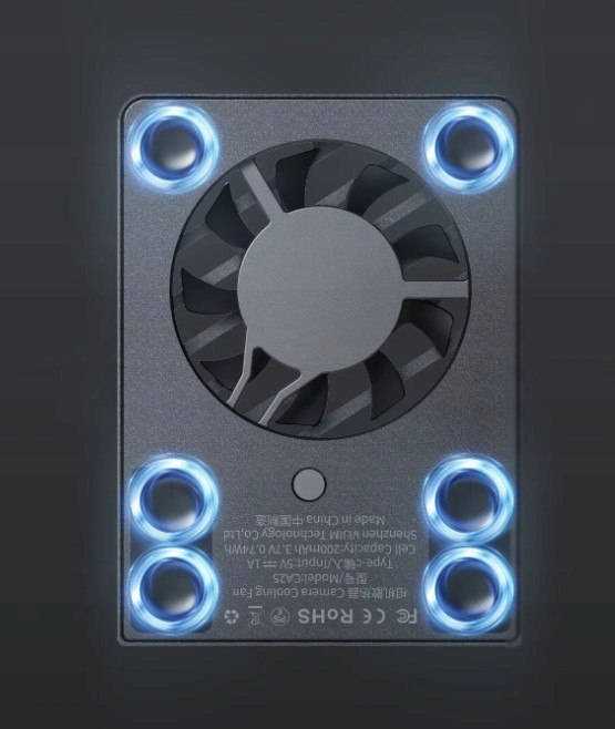 Вентилятор крепится к камере с помощью шести прочных присоски . Обеспечивает эффективное и стабильное охлаждение, создавая высокую скорость ветра при сохранении низкого уровня шума.