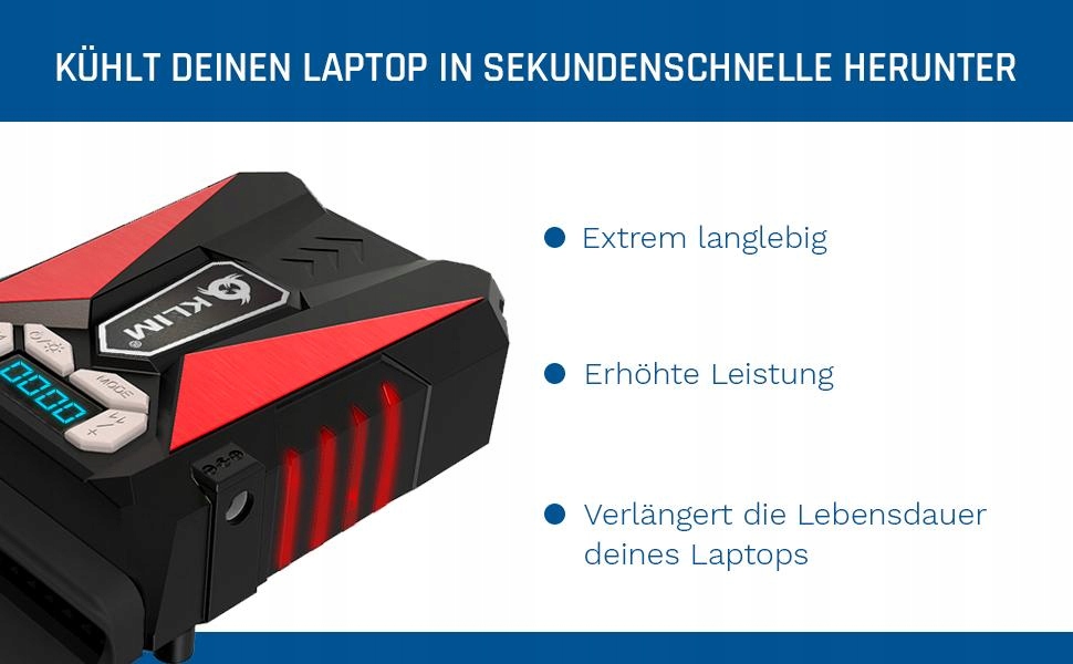 KLIM Cool работает как суперкулер, вытягивая горячий воздух из ноутбука и обеспечивая мгновенное охлаждение.