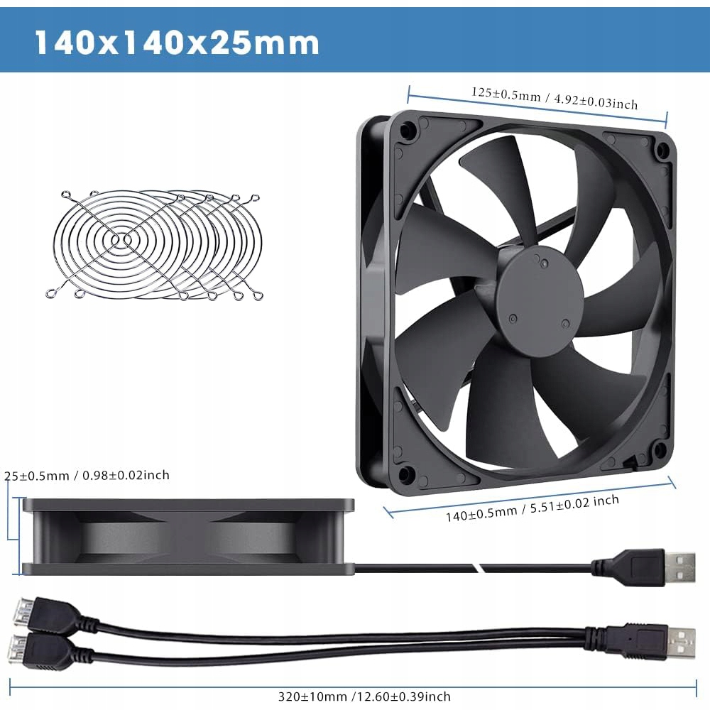 💻 USB 140 мм с USB -портом, подключаемость и воспроизведение, простой в использовании. обе стороны вентилятора с металлической решеткой могут защитить лопасти вентилятора, кабели и пальцы, вы всегда можете безопасно использовать эти вентиляторы.