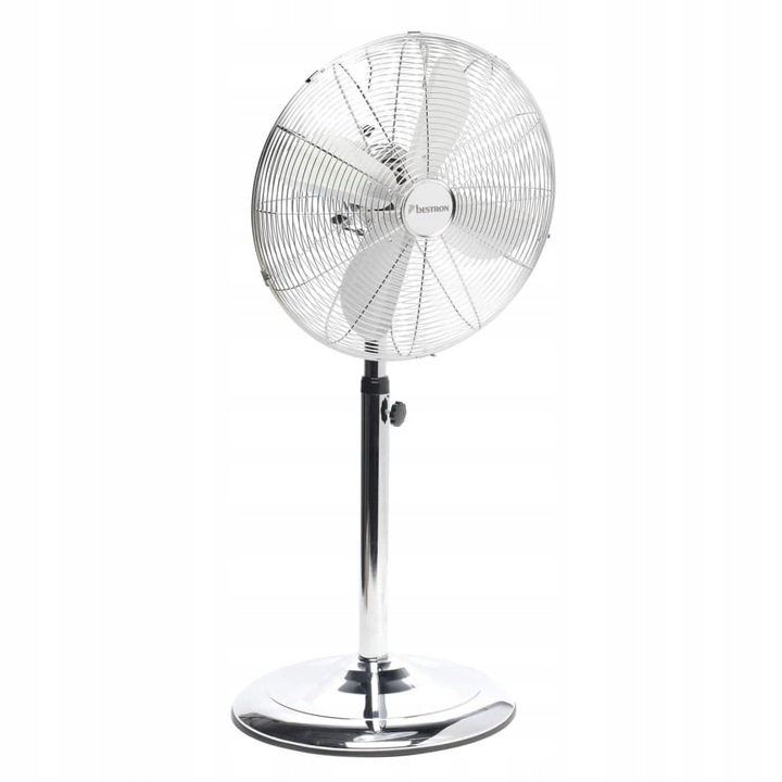 Этот высококачественный напольный вентилятор Bestron сочетает в себе превосходную производительность и эстетичный дизайн. Оснащенный медным вентилятором мощностью 50 Вт и пропеллером диаметром 45 см, он обеспечивает эффективное охлаждение, а хромированная защитная решетка придает ему элегантный вид.