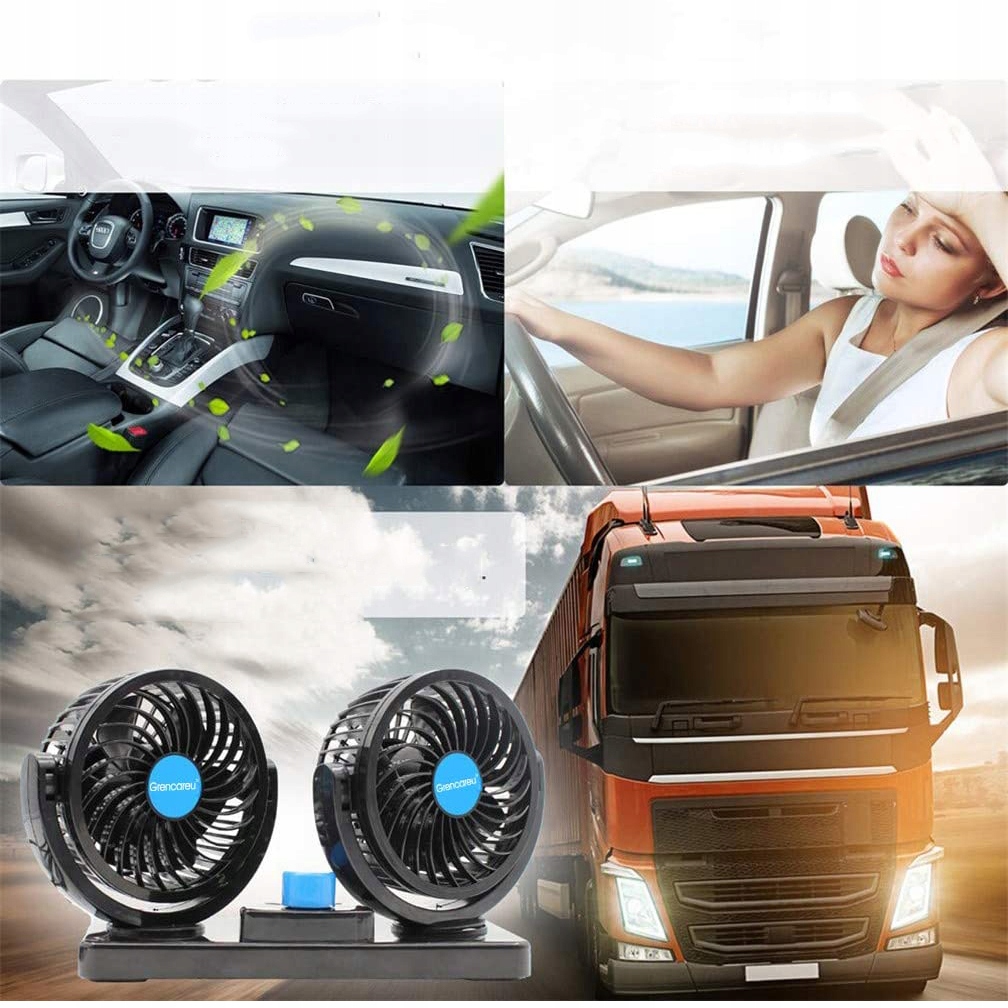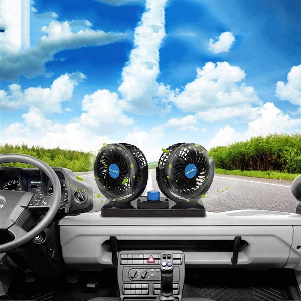 🍀 Возможность вращения на 360 °: двойная головка может вращаться на 360 °, а основание вентилятора может быть повернуто на 180 ° для улучшения воздушного потока и обеспечения холода в автомобиле.